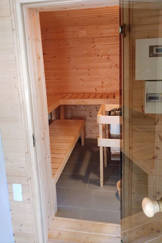 Al piano terra della casa si trovano una camera da letto, la sauna adiacente all'accogliente zona salotto e uno dei due bagni con doccia.