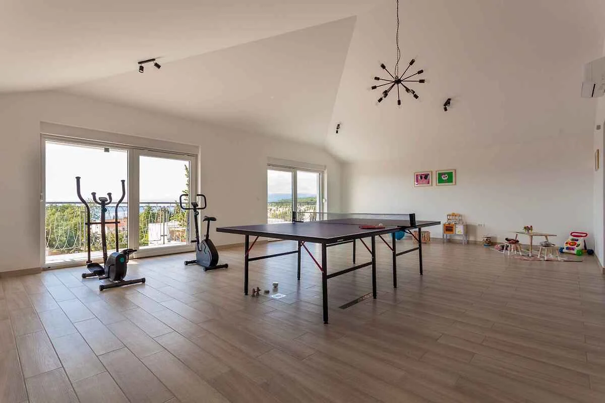 2° piano: Galleria con Al secondo piano c'è una sala giochi per bambini, un tavolo da ping pong, attrezzature per il fitness e un frigorifero supplementare. Bagno con doccia.