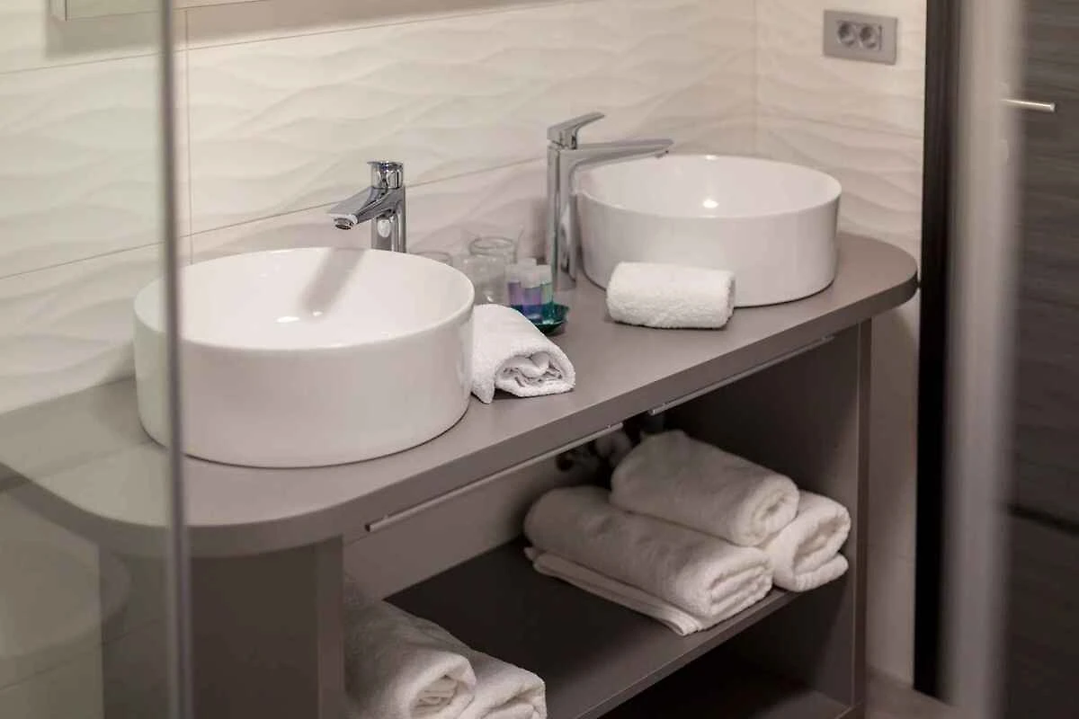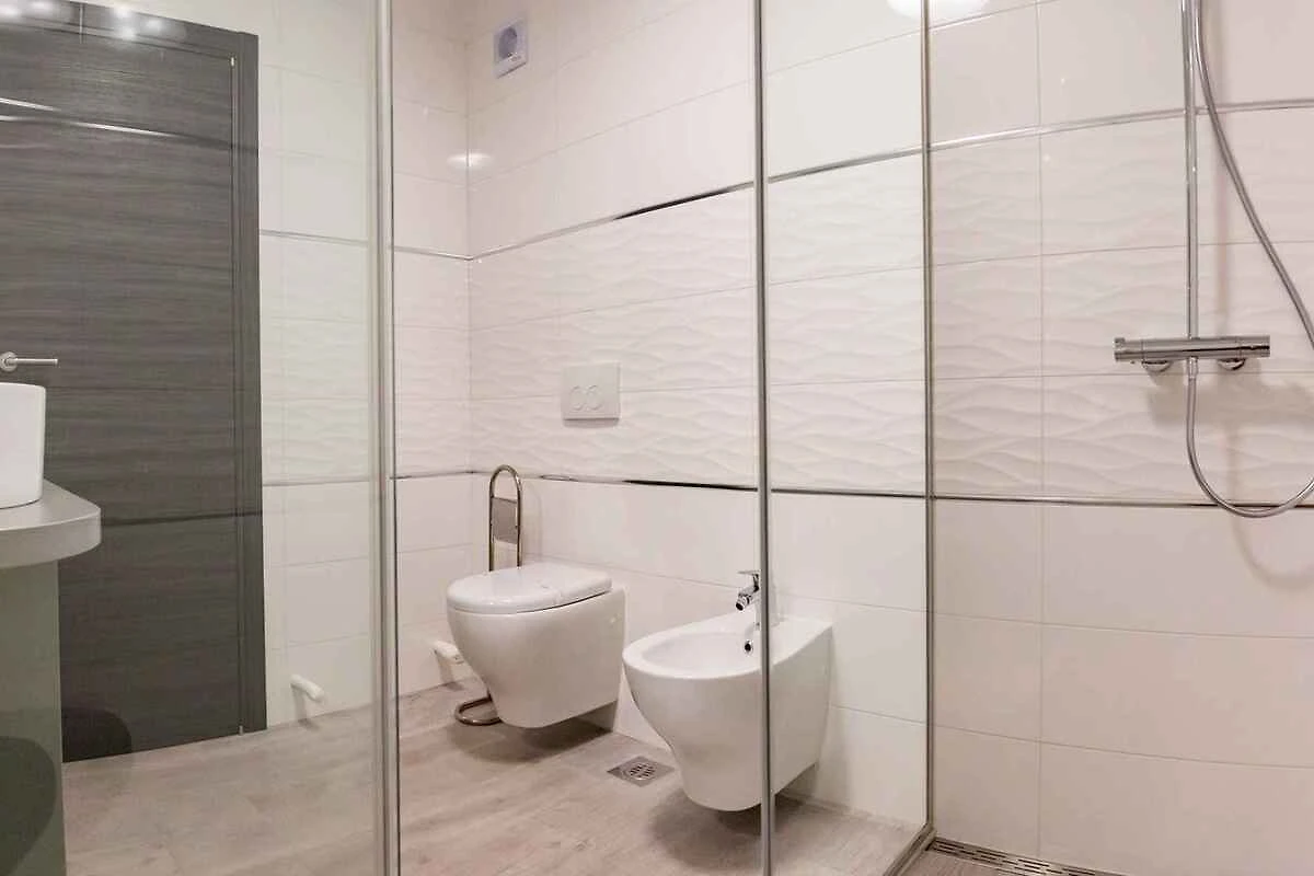 1° piano: 2 camere da letto tutto a con 1 letto matrimoniale, TV e accesso al balcone (mobili da giardino, 1 tavolo, 2 sedie). Camera da letto con 1 letto singolo, 1 culla e TV. 2 bagni tutto a con doccia, 2 lavandino, WC, bidet e asciugacapelli.