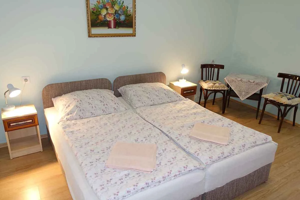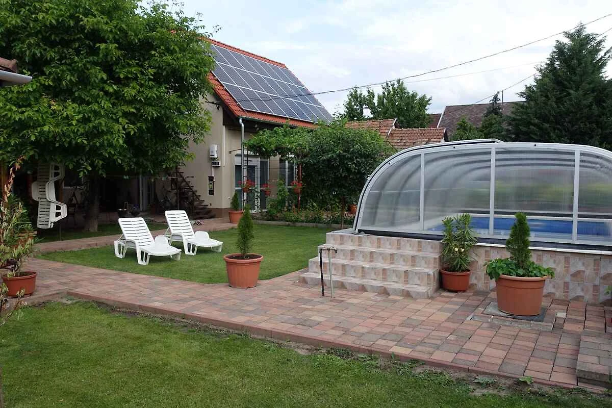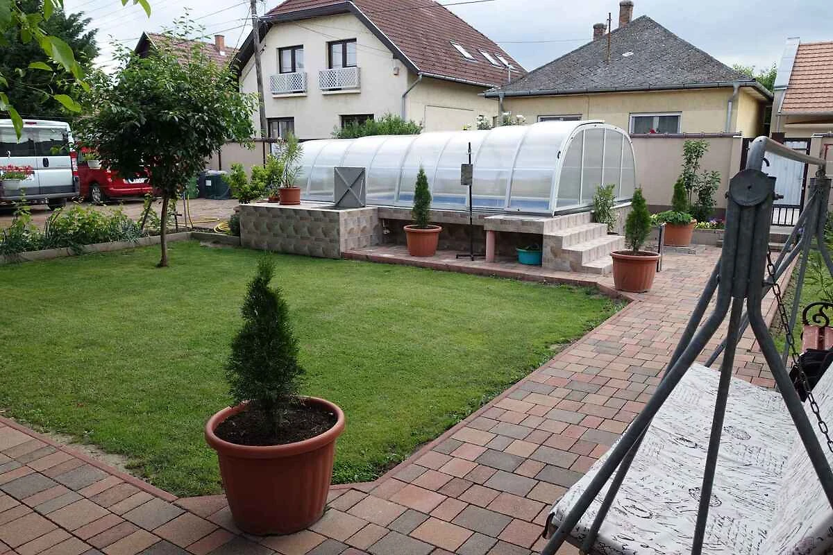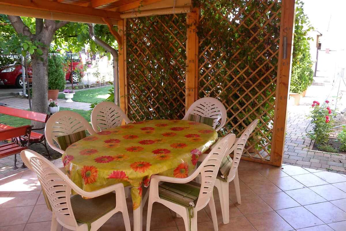 Siofok. L' appartamento vacanze si trova in una proprietá chiuso, grande 80 mq con fiori, delimitata da una recinzione. Il padrone di casa vive in un altro edificio nella stessa proprietá. La casa si trova nel centro di Siófok, ma isolata e molto tranquilla. Puoi approfittare della vicinanza al centro, è solo un breve salto. A fine giornata puoi concludere la serata con la tua famiglia in pace e tranquillità. Zanzariere su ogni finestra. L'accesso avviene vicino a una strada secondaria (asfaltata). Parcheggio sulla strada davanti alla casa. gratis
