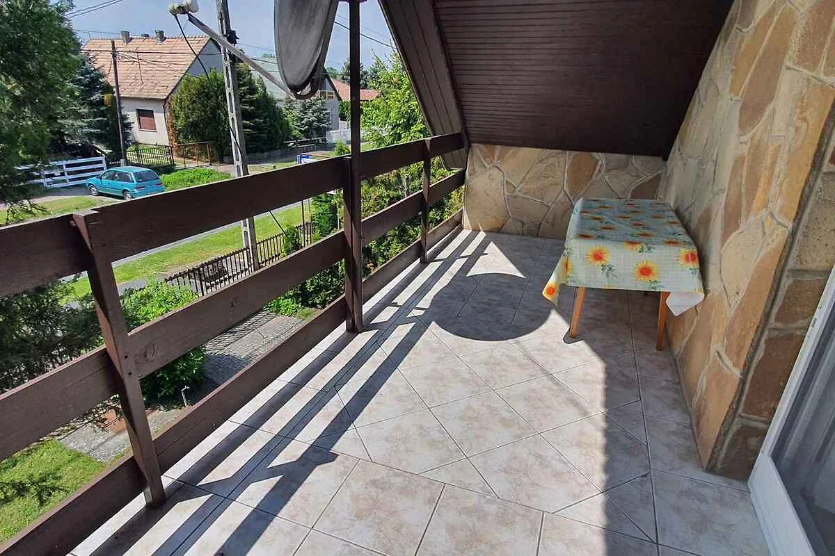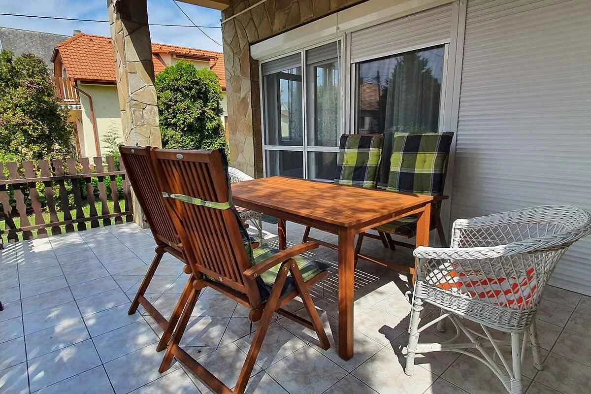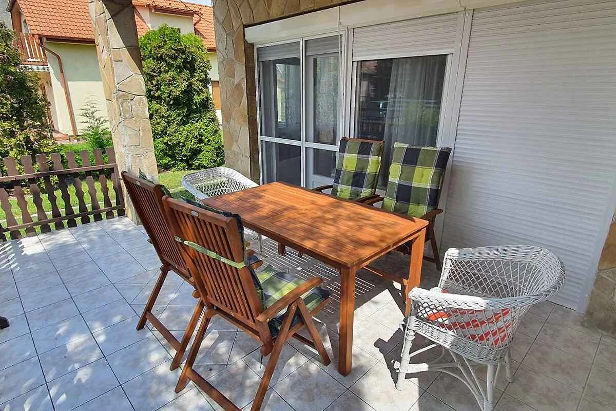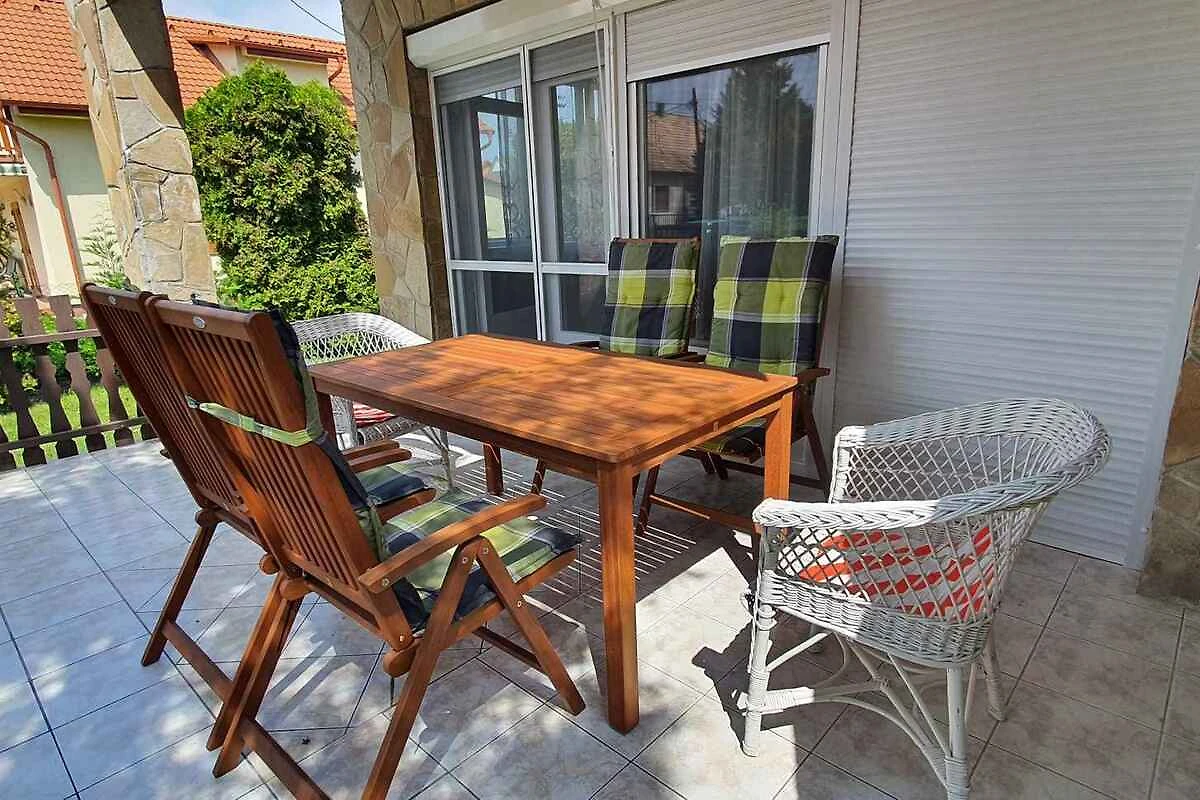 Balatonmáriafürdő. La casa vacanza si trova in una trama del giardino chiuso, grande 700 mq con prato, fiori e arbusti, delimitata da una recinzione. Il proprietario non abita nella casa o nella proprietá. L'accesso avviene direttamente dalla strada principale (asfaltata). Parcheggio (per 2 auto) sulla proprietà.