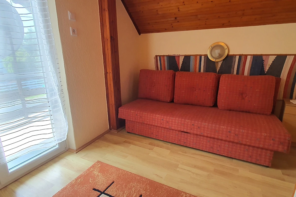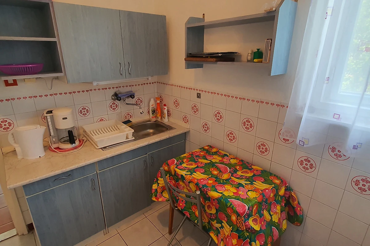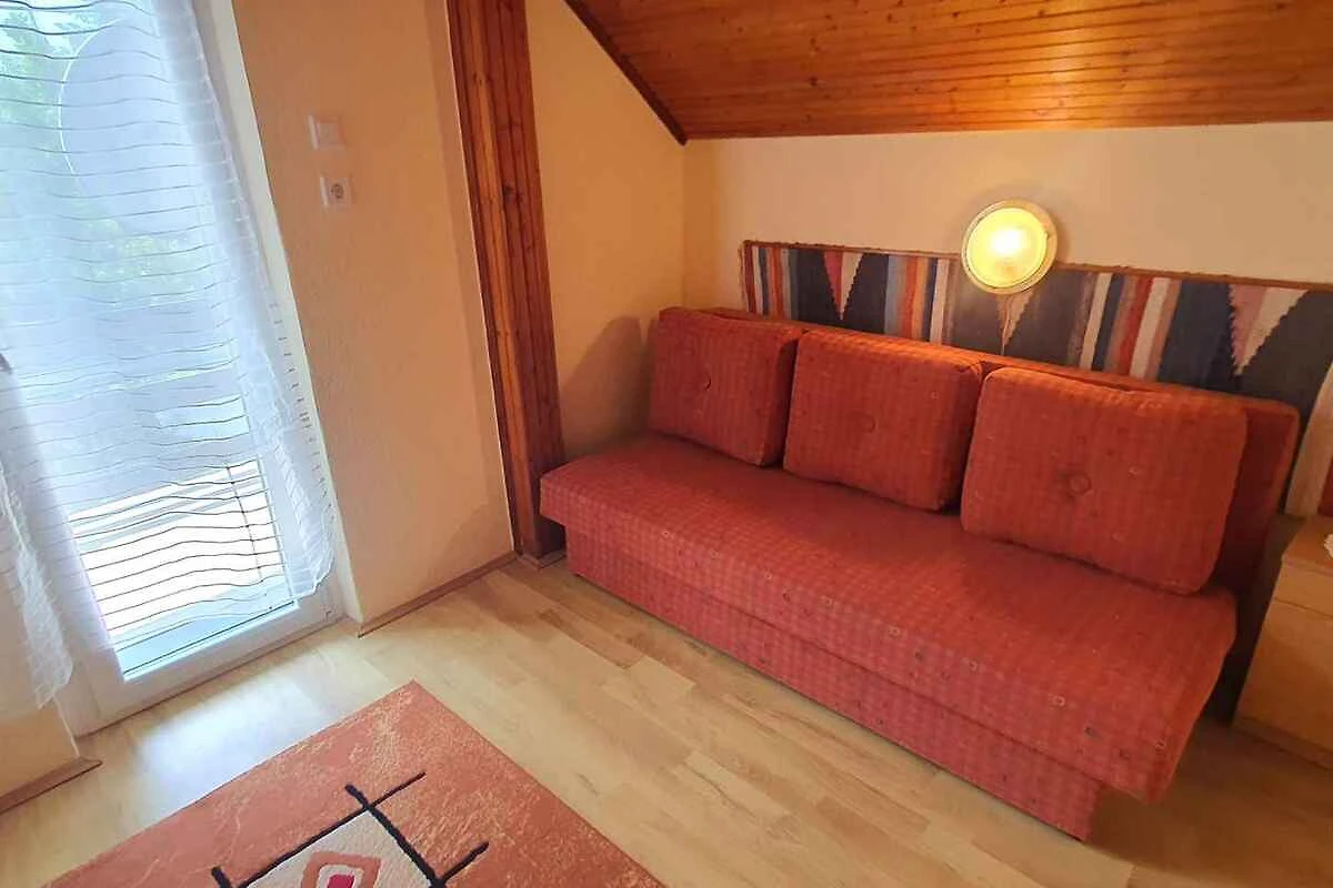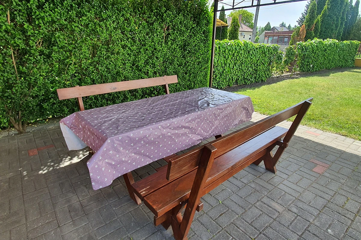 Balatonmáriafürdő. La casa vacanza si trova in una trama del giardino chiuso, grande 700 mq con prato, fiori e arbusti, delimitata da una recinzione. Il proprietario non abita nella casa o nella proprietá. L'accesso avviene direttamente dalla strada principale (asfaltata). Parcheggio (per 2 auto) sulla proprietà.