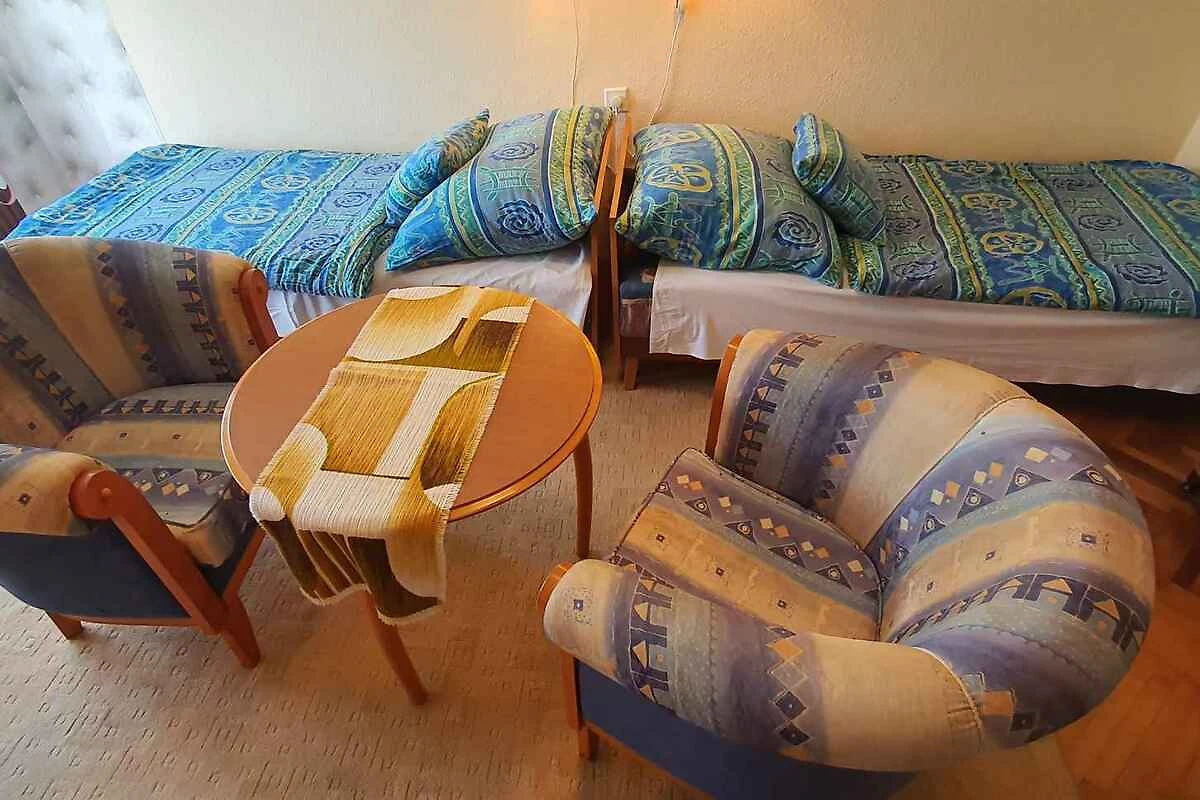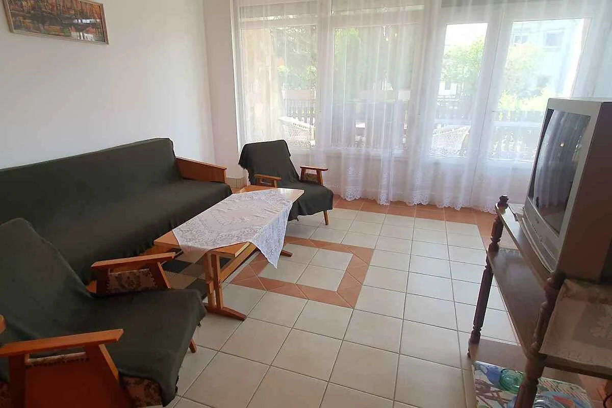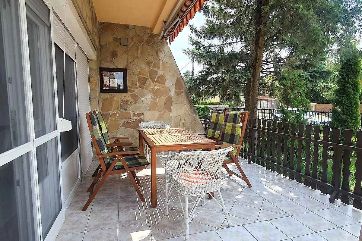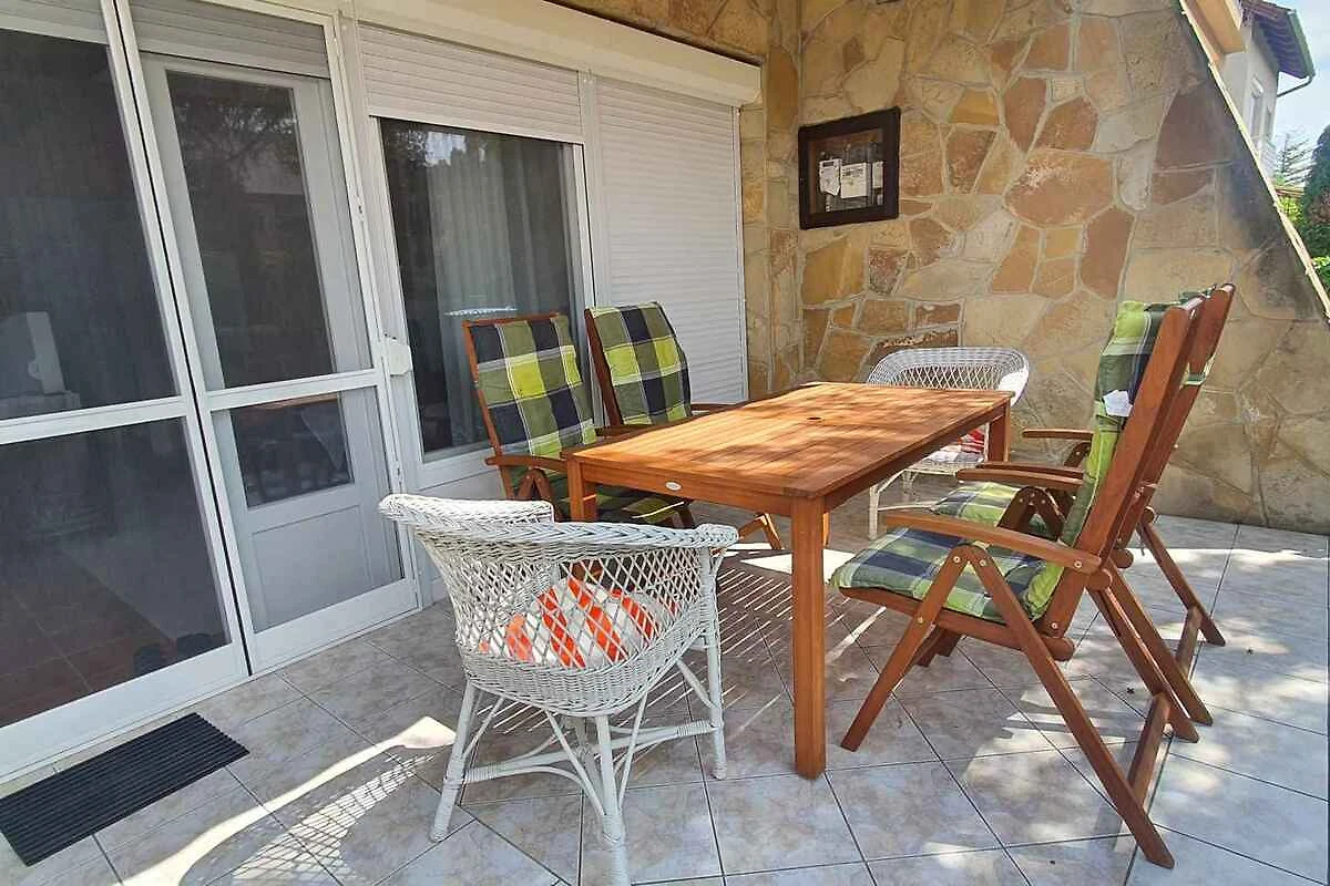 e arredata in stile tradizionale. La proprietà si trova in un insediamento di case vacanze, in centro città. Anche a causa soleggiata posizione, il domicilio è popolare. Attrezzature ad uso esclusivo: prato per prendere il sole, ombrellone, possibilità di grigliare, padiglione e mobili da giardino.