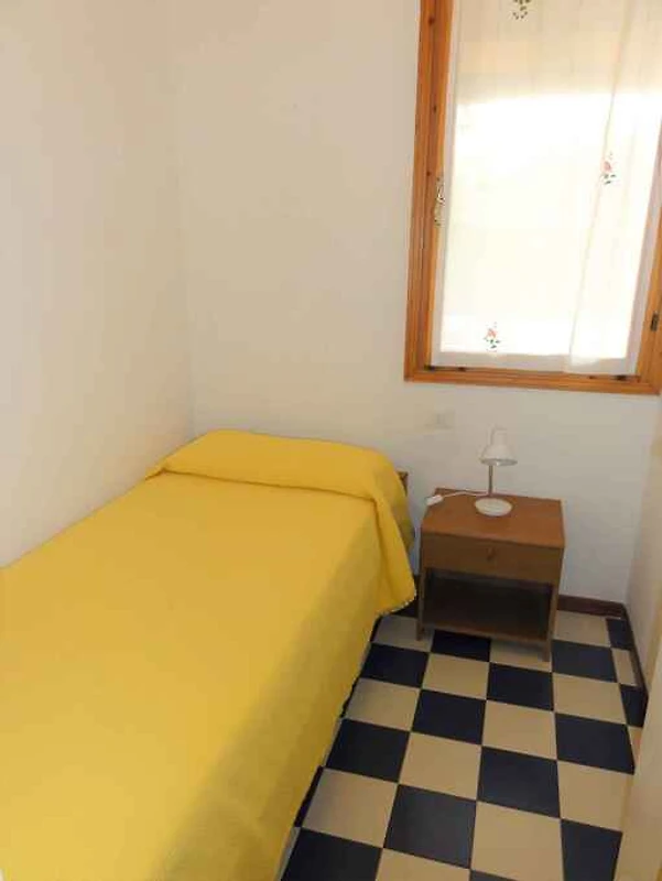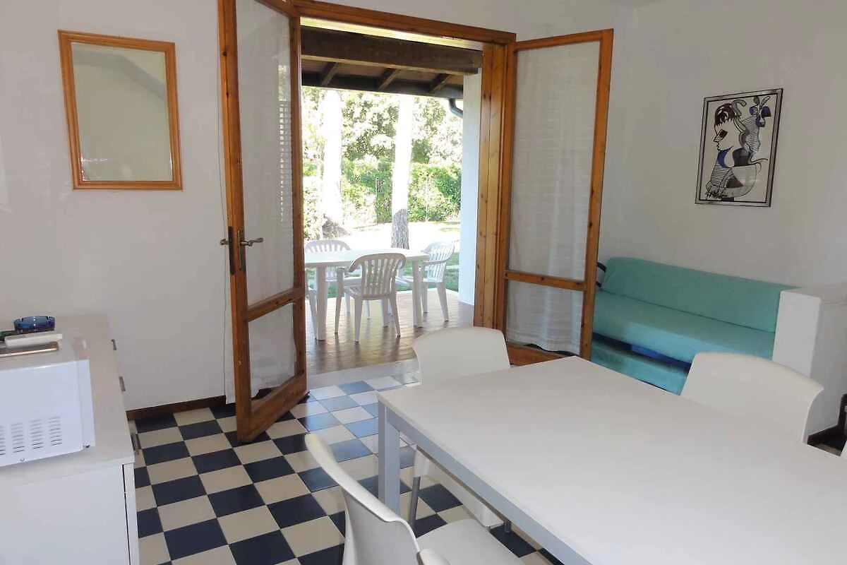 Bibione, frazione Spiaggia. L' appartamento vacanze si trova in un villaggio turistico, in una trama del giardino chiuso con prato e alberi, delimitata da una siepe. L'accesso avviene vicino a una strada secondaria (asfaltata). Parcheggio (per 1 auto) sulla proprietà.