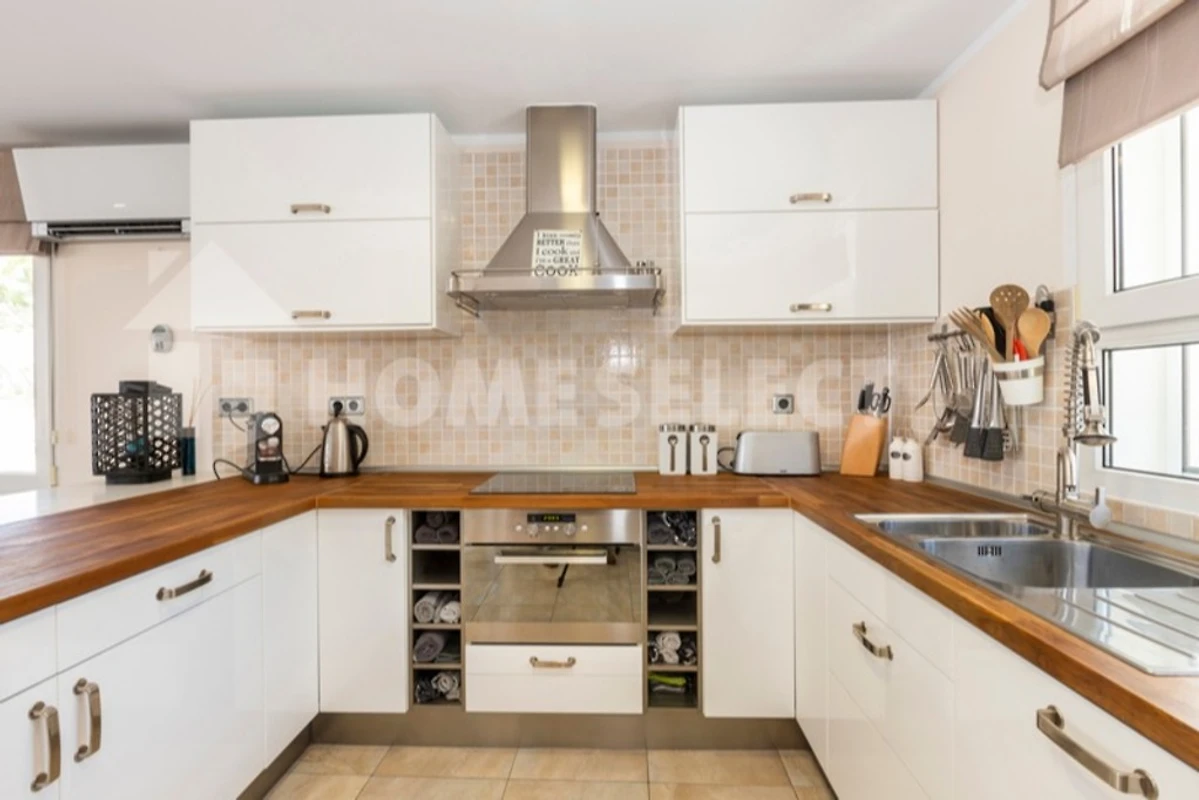 Villa (canale), ormeggio 12 m, piscina, giardino, terrazza con sedie a sdraio e tavolo per 8 persone, parcheggio. Soggiorno/sala da pranzo, cucina aperta con lavastoviglie, forno e forno a microonde, 4 camere da letto matrimoniali, due bagni (uno con doccia e uno con vasca). Aria condizionata in soggiorno/sala da pranzo e in tutte le camere da letto. Lavatrice. Bagno per gli ospiti. Garage.
