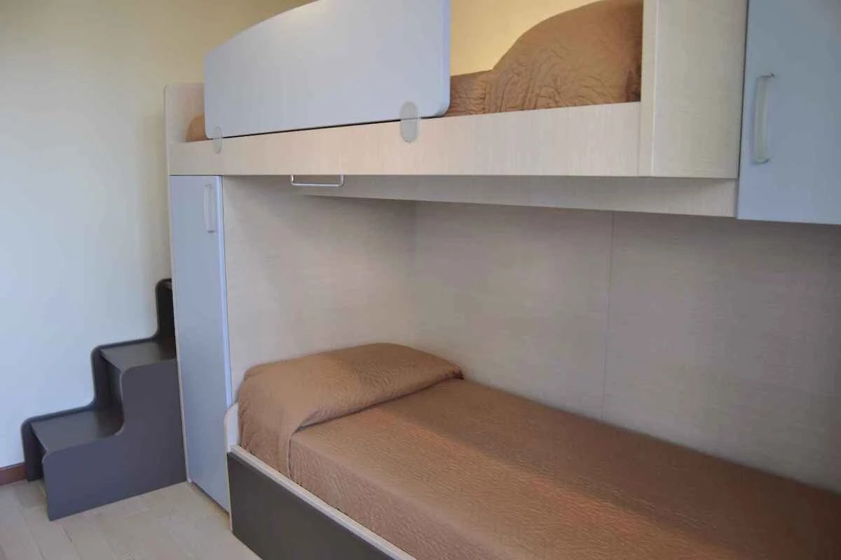 Appartamento vacanze, 1 piano, 3 stanze (di cui 2 camera da letto), 60 mq, totale 5 letti (di cui 2 letti aggiuntivi). Su richiesta: 1 bambino fino a 2 anni in culla.