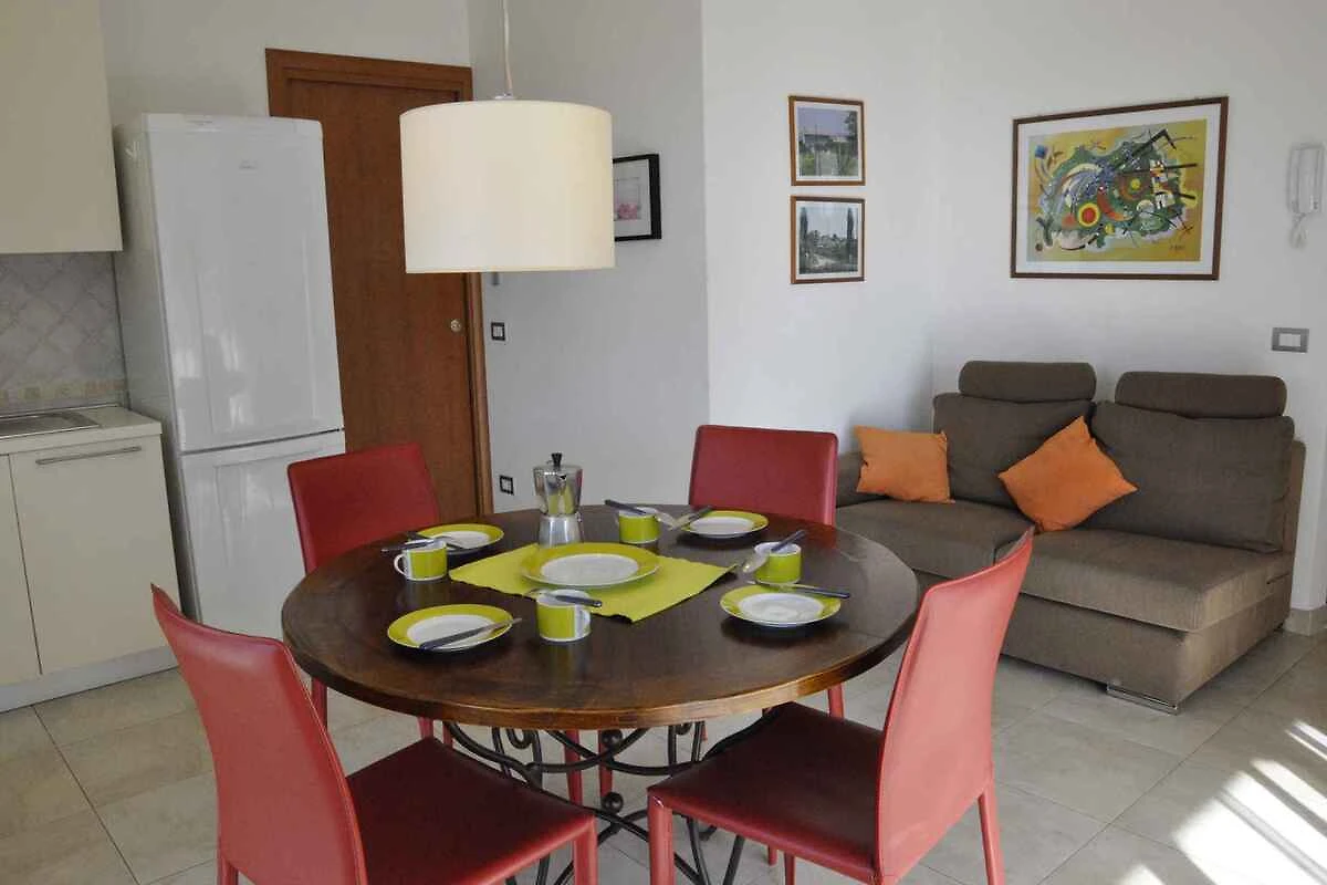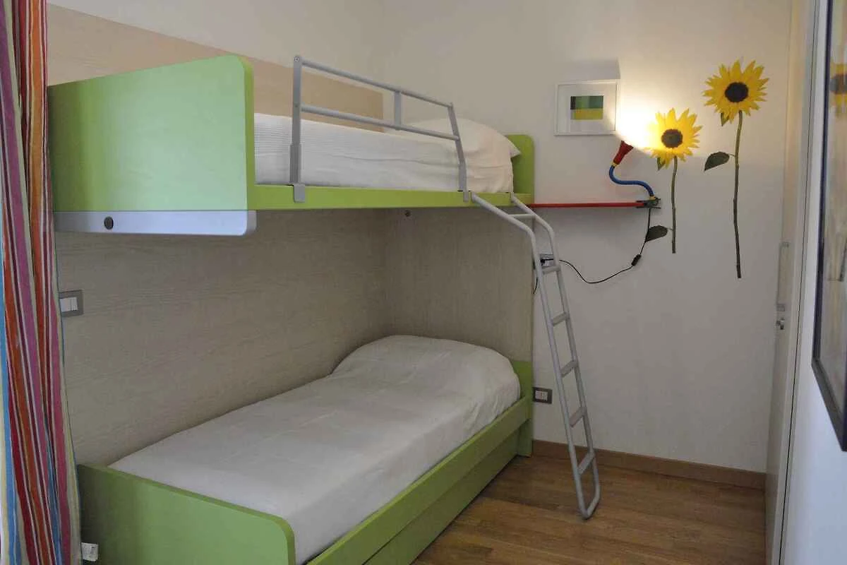 Appartamento vacanze, 1 piano, 3 stanze (di cui 2 camera da letto), 60 mq, totale 5 letti. Su richiesta: 1 bambino fino a 2 anni in culla.