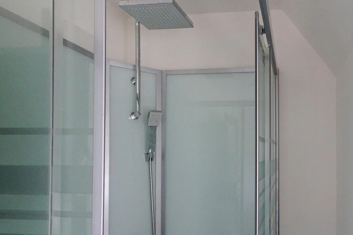 Al 1° piano: (Camera da letto(letto matrimoniale(140 x 190 cm)), Camera da letto(letto singolo(90 x 190 cm)), Camera da letto(letto singolo(90 x 190 cm)), Bagno(doccia), Bagno di servizio)