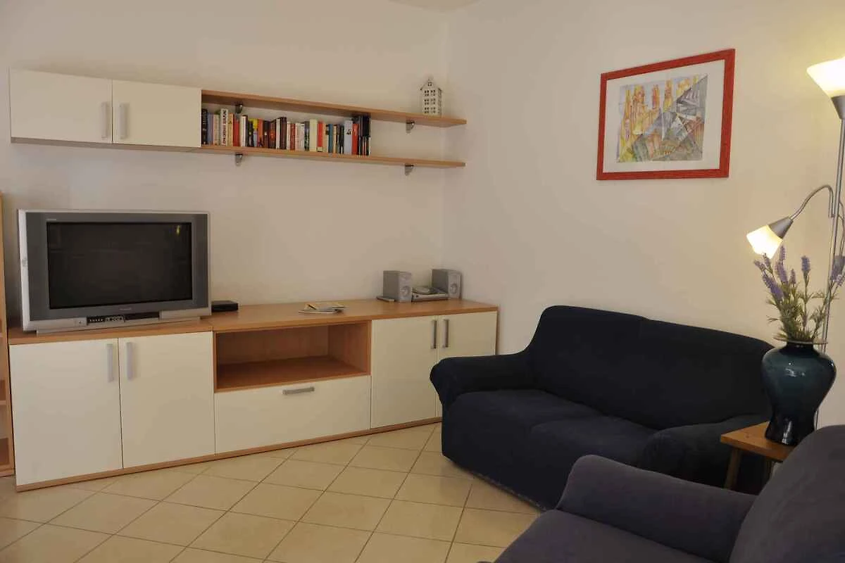 L'ingresso del vostro appartamento si trova im Erdgeschoss, é a livello del suolo e conduce direttamente nella cucina abitabile. Soggiorno con TV e accesso alla terrazza (mobili da giardino). Camera da letto con 1 letto singolo e 1 letto a castello. Camera da letto con 1 letto matrimoniale. Angolo cucina nella cucina soggiorno con zona pranzo, stufa a gas (4 fiamme), forno, cappa aspirante, frigorifero (scomparto del ghiaccio), microonde e accesso alla terrazza. Bagno con lavatrice, doccia, 1 lavandino, WC e bidet.