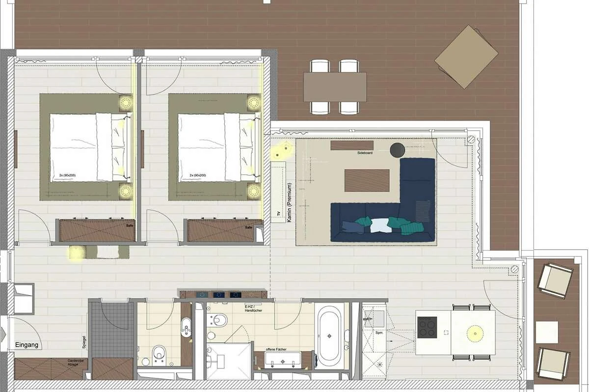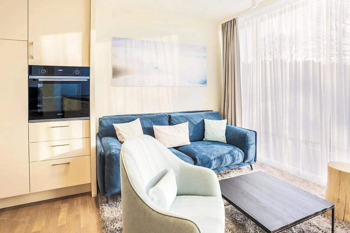 Angolo cottura(tavolo da pranzo, piano cottura(4 fuochi, ceramica), bollitore, tostapane, caffettiera, forno, lavastoviglie, frigorifero), Soggiorno / Pranzo(TV(cavo), radio), Camera da letto(letto matrimoniale), Camera da letto(letto matrimoniale), Bagno(doccia, lavandino, WC, asciugacapelli), sgabuzzino, garage(in comune con altri ospiti), sauna(paid), balcone, riscaldamento, deposito biciclette, mobili da giardino, parcheggio, piscina(in comune con altri ospiti, a pagamento, riscaldata), ascensore, baby crib(paid), Asciugamani/Lenzuola (inclusi)