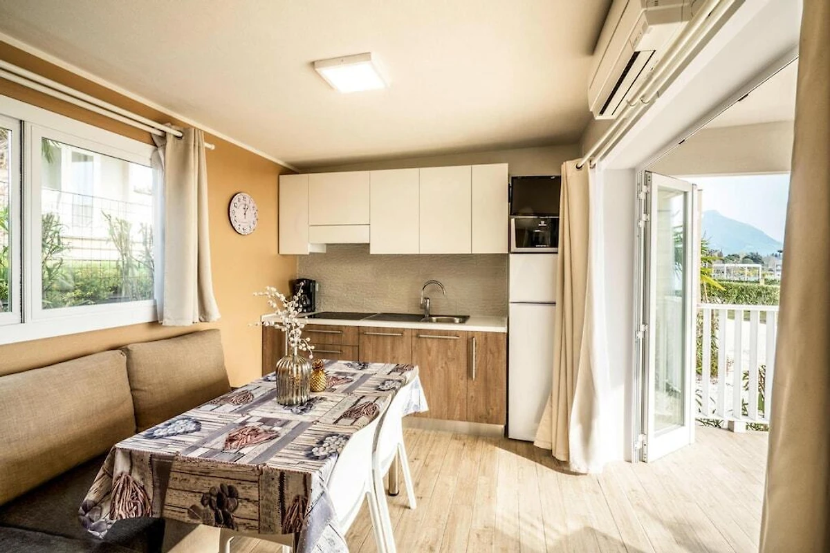 Ottima posizione proprio sul lago, L'atmosfera del campeggio è rilassata e il personale era super cordiale, L'appartamento era accogliente e aveva tutto ciò di cui avevamo bisogno, L'unico svantaggio era la situazione del parcheggio, ma nel complesso è un ottimo posto per una fuga in famiglia, Ci tornerei in un attimo!
