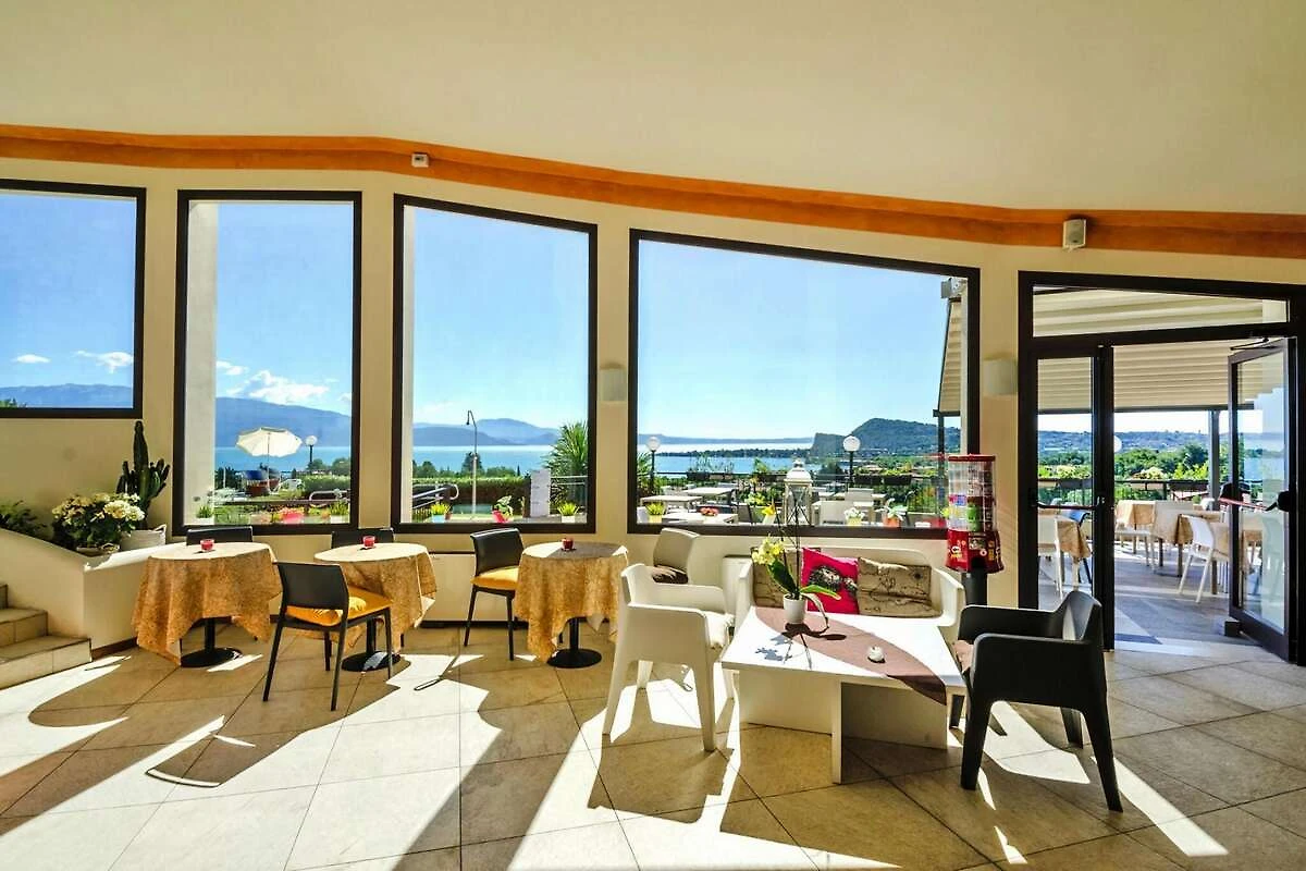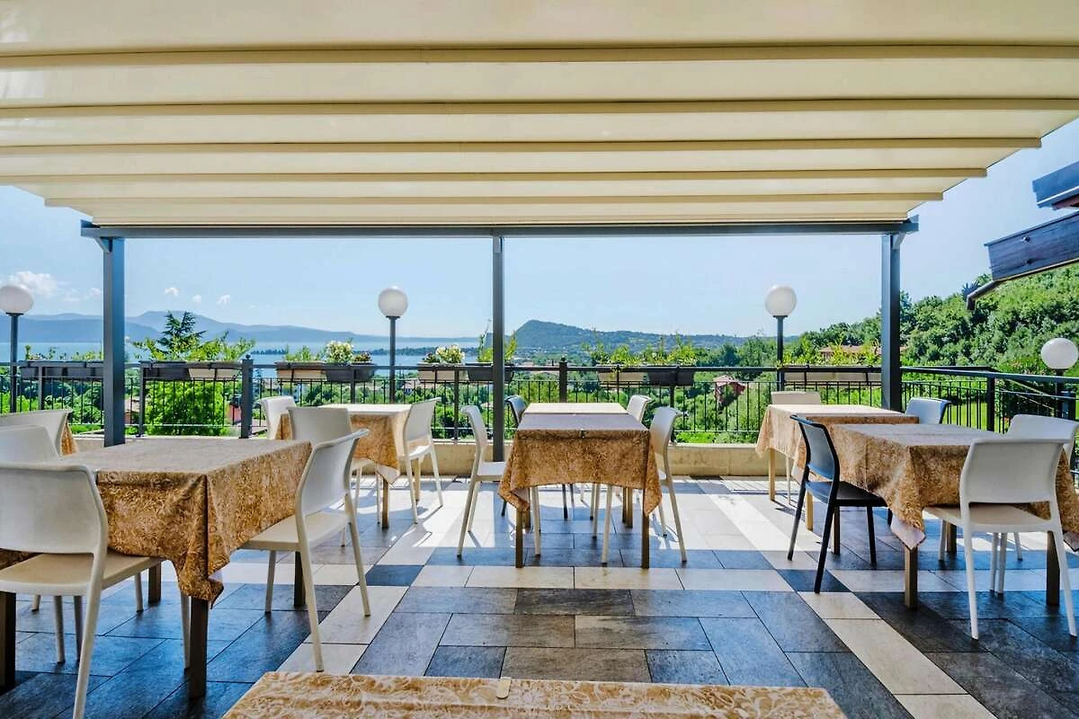 Dall'hotel si gode di una vista particolarmente bella e indimenticabile sul Lago di Garda, Il personale era molto cordiale e sempre disponibile, Ci siamo sentiti molto a nostro agio, Abbiamo prenotato la mezza pensione e non ce ne siamo pentiti, Sia la colazione che la cena sono state servite abbondantemente, Tuttavia, la colazione potrebbe essere un po' più varia, L'unica nota negativa era che l'appartamento aveva una porta comunicante con i vicini ed era quindi rumoroso,