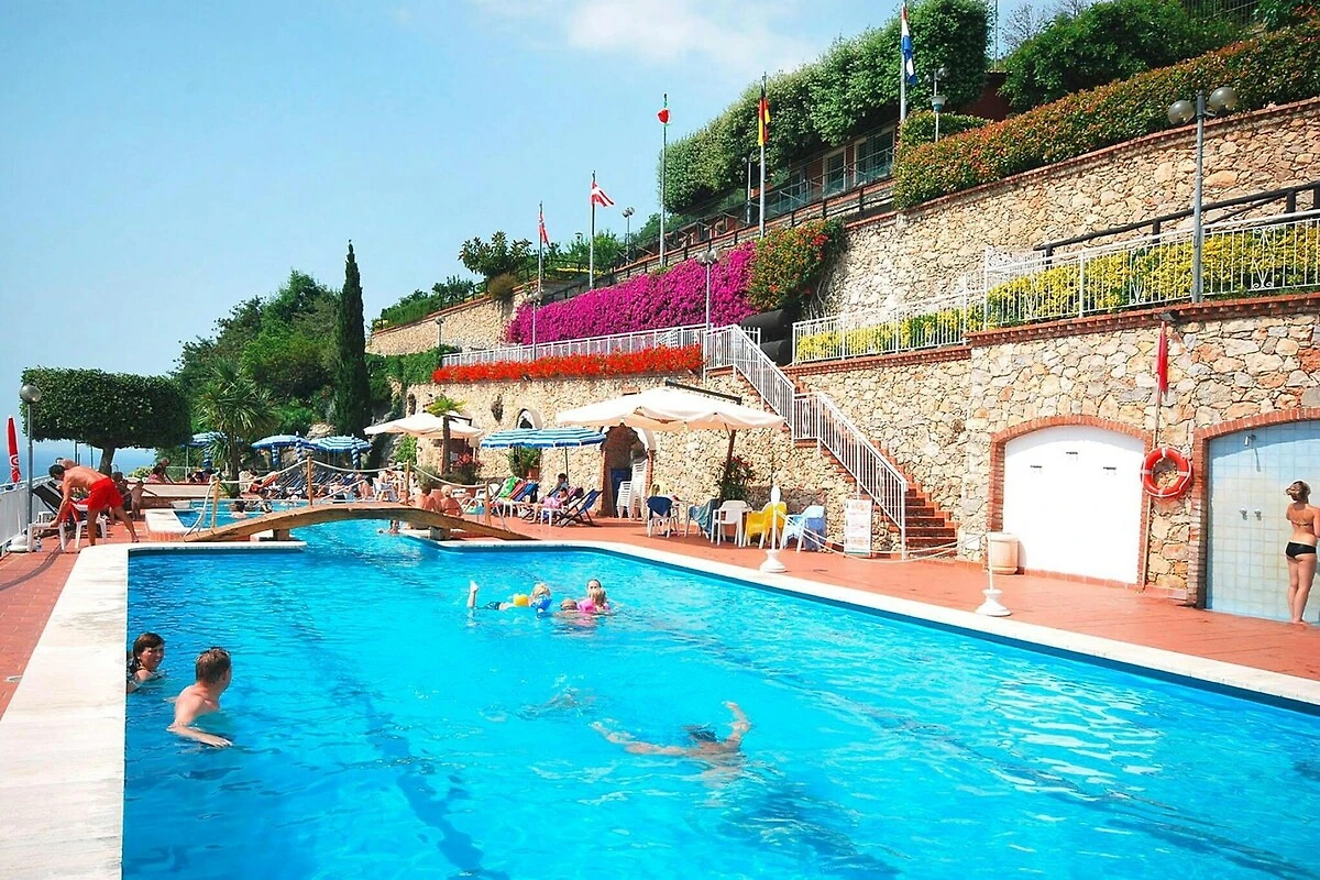 Impressionanti viste del mare di Liguria dal balcone, La piscina condivisa era un luogo perfetto per rilassarsi