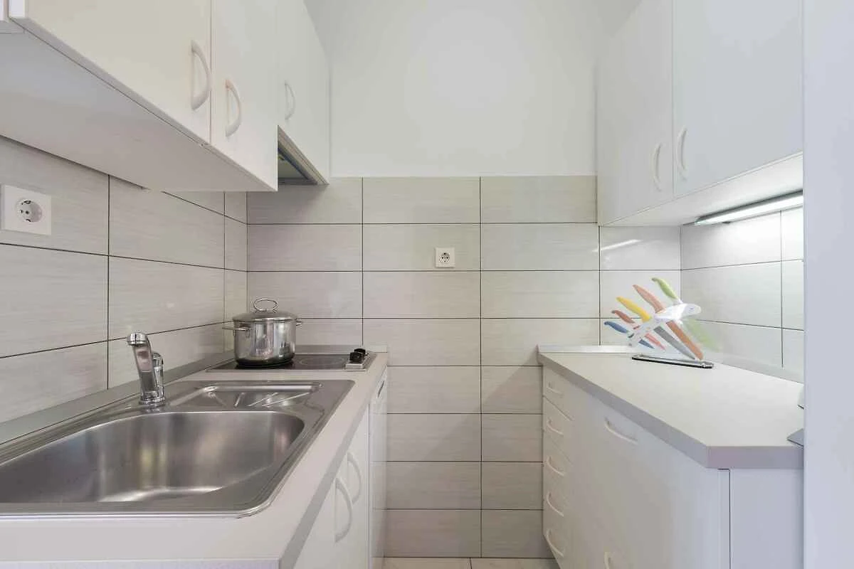 L' appartamento vacanze si trova in una casa unifamiliare ed è arredato funzionale e in stile tradizionale. La proprietà si trova in periferia. Anche a causa della vista dalla struttura sul mare e tranquilla e soleggiata posizione, il domicilio è popolare. Attrezzature: possibilità di grigliare, terrazza e mobili da giardino. barbecue portatile