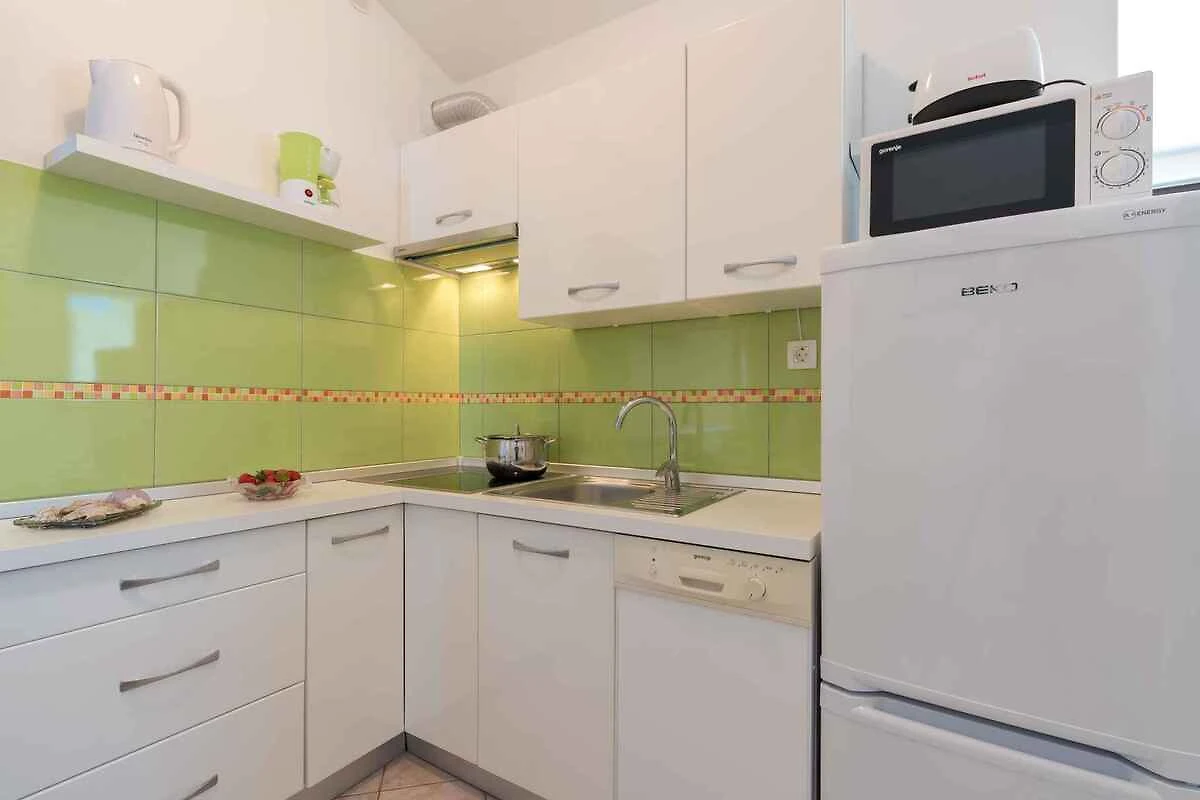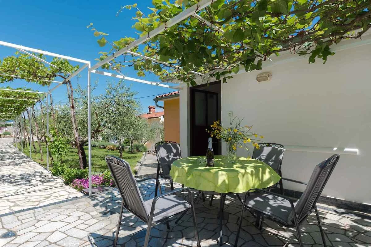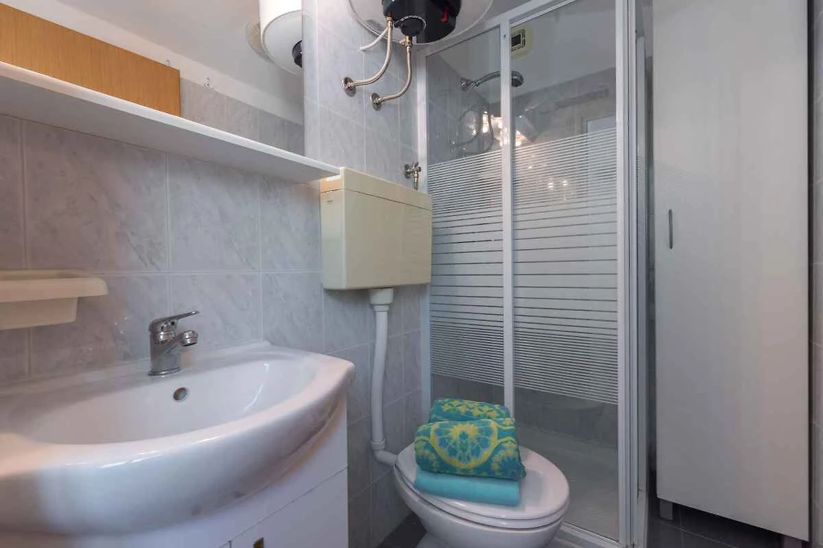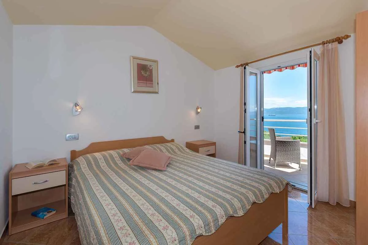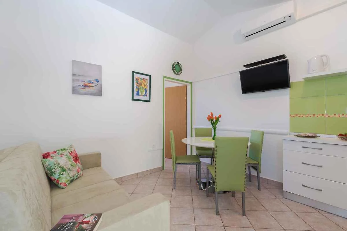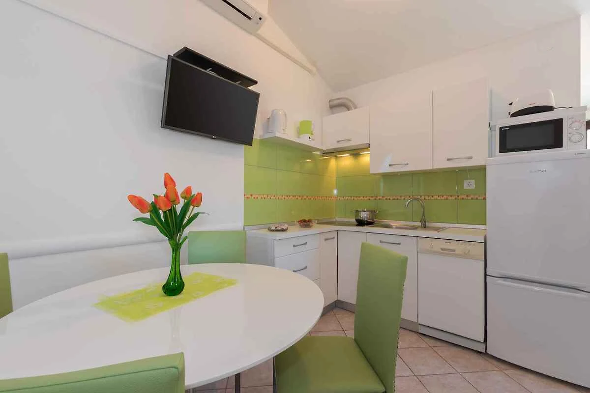 L' appartamento vacanze si trova in un appartamento casa ed è arredato funzionale e in stile tradizionale. La proprietà si trova in periferia. Anche a causa della vista dalla struttura sul mare e tranquilla e soleggiata posizione, il domicilio è popolare. Attrezzature: lettino da sole, possibilità di grigliare, terrazza e mobili da giardino.