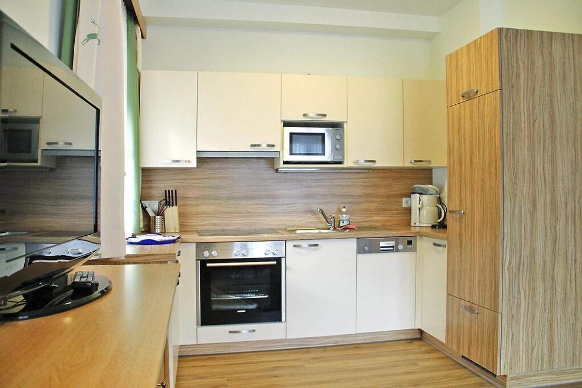 Atrio, Cucina separata(stufa, piano cottura(ceramica), caffettiera, forno, lavastoviglie, frigo con congelatore), Soggiorno / Pranzo(divano letto doppio, TV(satellite)), Camera da letto(letto matrimoniale), Camera da letto(letto matrimoniale, letto a castello), Bagno(doccia), Bagno di servizio, balcone, riscaldamento(elettrico), mobili da giardino, lettini prendisole, parcheggio