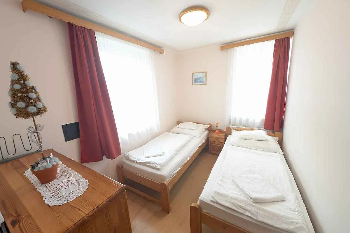 L'ingresso del vostro appartamento conduce direttamente nel vestibolo con guardaroba e porte di tutte le camere. Soggiorno/camera da letto con 1 letto matrimoniale, TV e accesso al balcone (mobili da giardino). Camera da letto con 2 letti singoli. Cucina con stufa a gas (2 fiamme), frigorifero (scomparto del ghiaccio), microonde, caffettiera, bollitore elettrico e accesso al balcone. Bagno con doccia, 1 lavandino, WC e finestra.