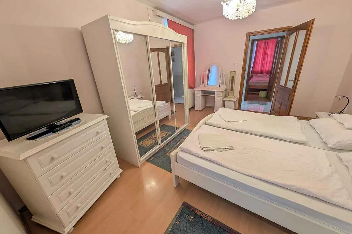 Riscaldamento centrale (Gas). culla, accesso a Internet (WIFI) e cassaforte. La ricezione televisiva avviene via cavo. Smart TV Full HD. Programmi in tedesco, inglese, ungherese.