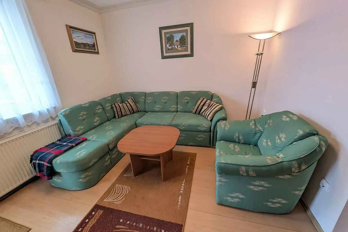 L' appartamento vacanze si trova in un appartamento casa, costruito nel 2001, è stato rinnovato nel 2006 ed è arredato moderno. La proprietà si trova in centro città. Anche a causa tranquilla e soleggiata posizione, il domicilio è popolare. Attrezzature in comune: parco giochi per bambini, sandbox, possibilità di grigliare, terrazza, padiglione, mobili da giardino, caminetto e fattoria.