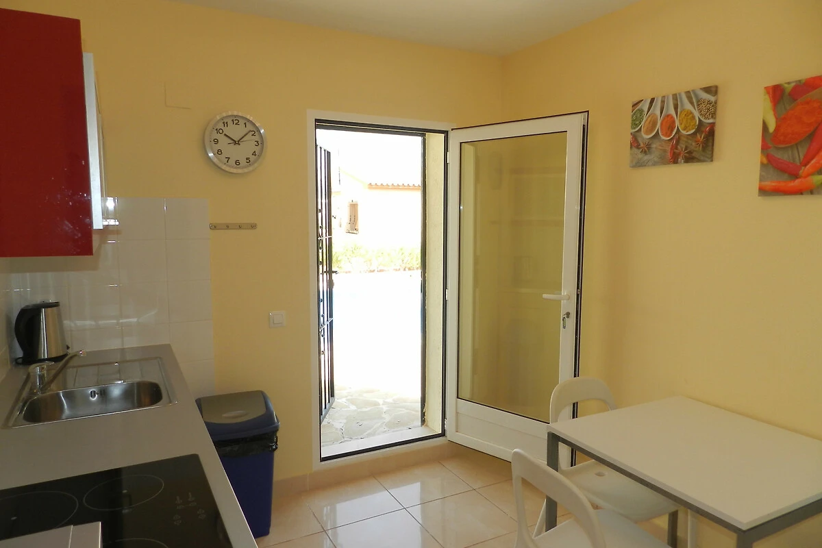 La cucina indipendente, a vetroceramica, è attrezzata con frigorifero, microonde, forno, congelatore, lavastoviglie, stoviglie/posate, utensili da cucina, caffettiera e bollitore.