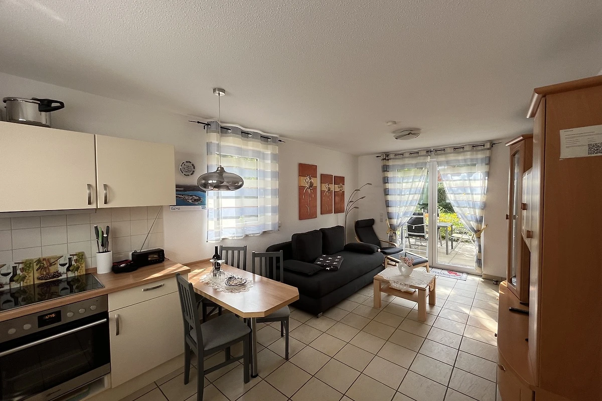 Qui potrete rilassarvi in un luminoso, confortevole e tranquillo appartamento al piano terra per non fumatori. L'appartamento per vacanze ha un ingresso indipendente e si trova in un complesso di case unifamiliari. L'appartamento è dotato di riscaldamento a pavimento, il pavimento è piastrellato in tutte le stanze.