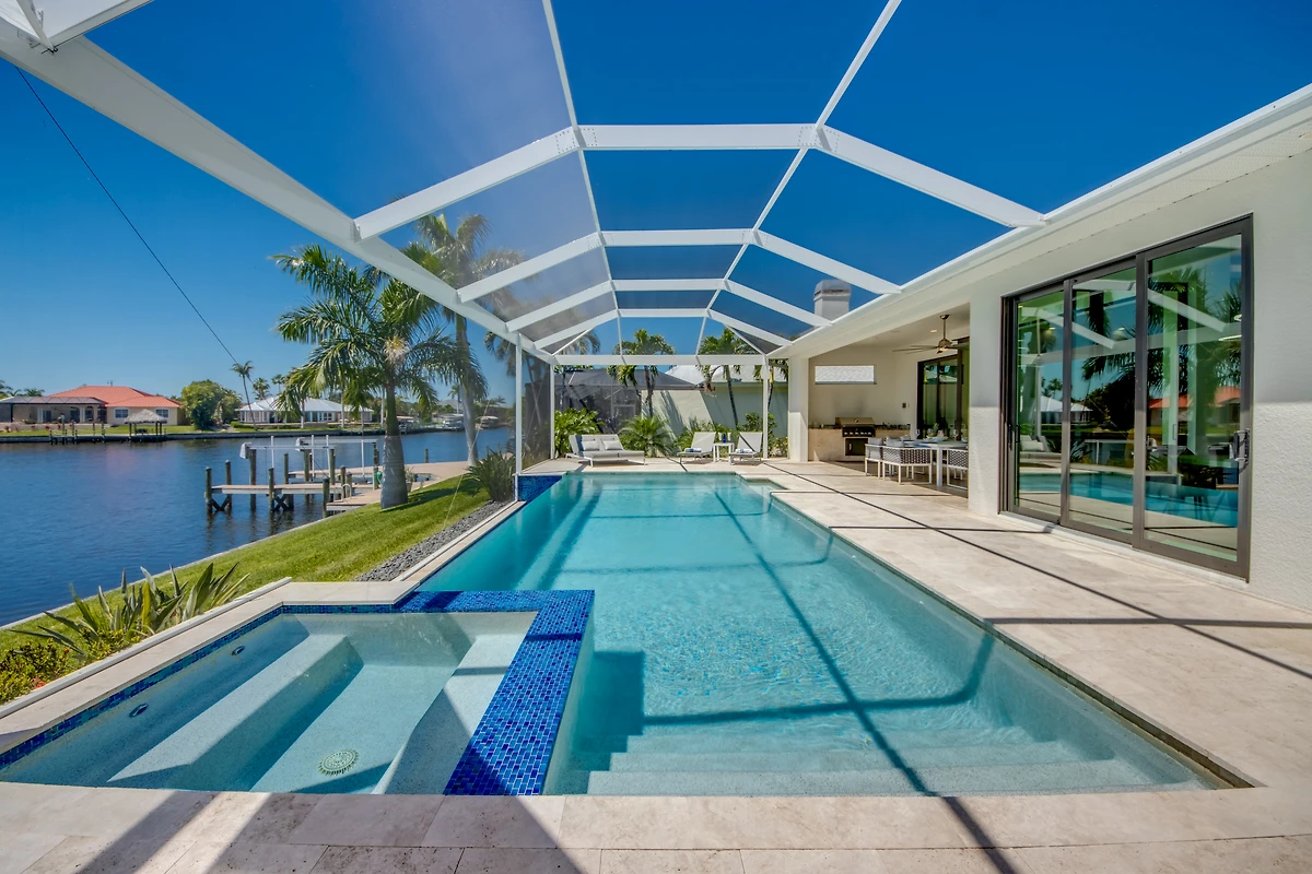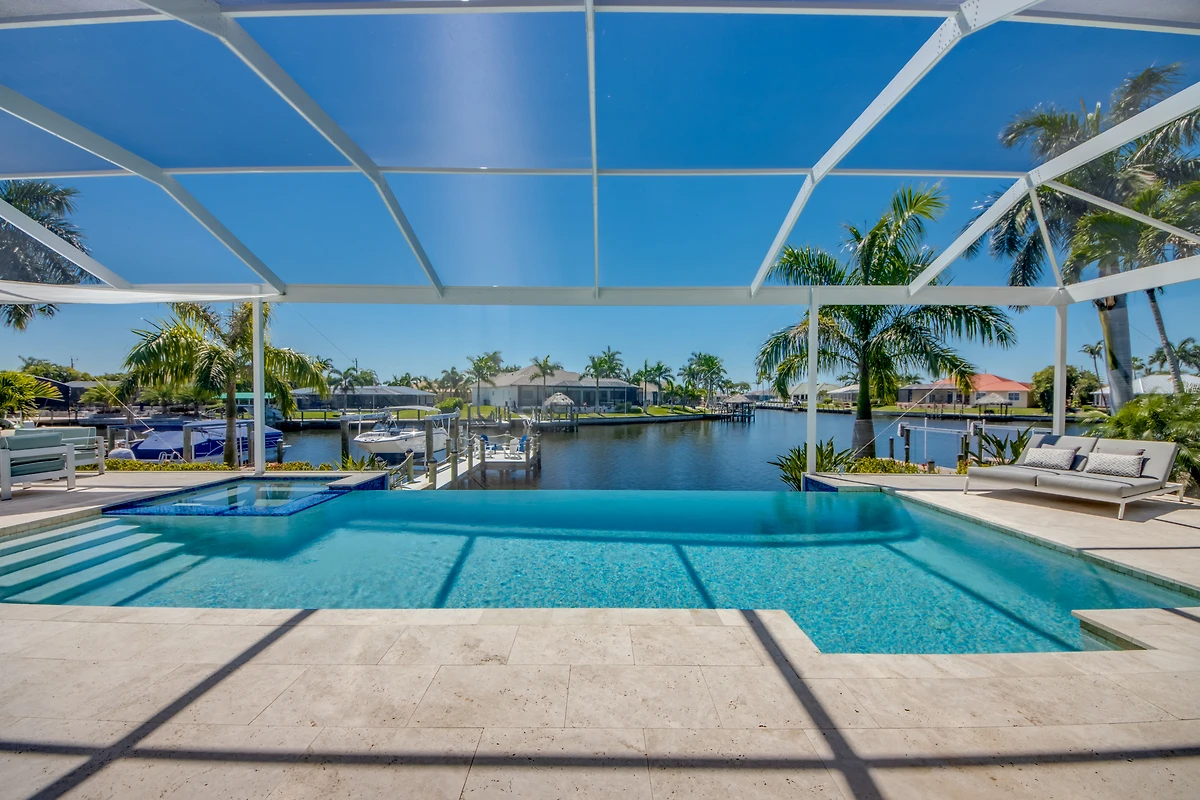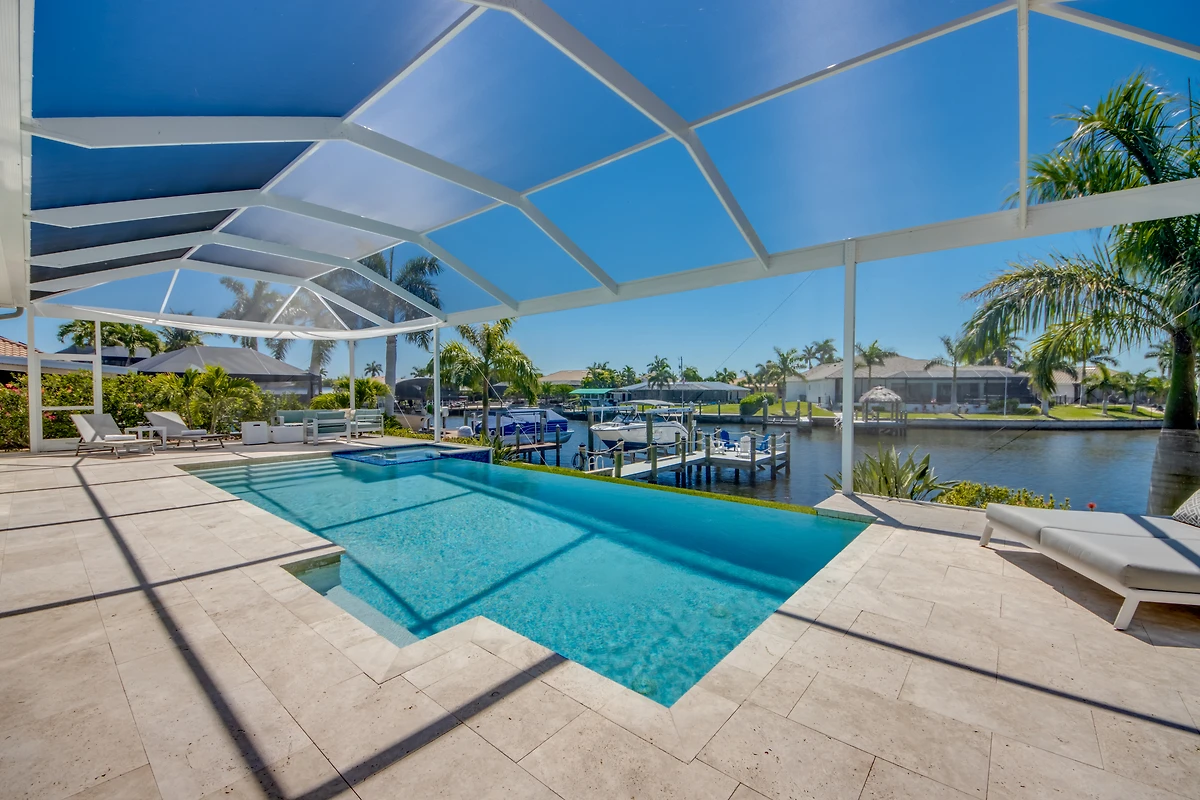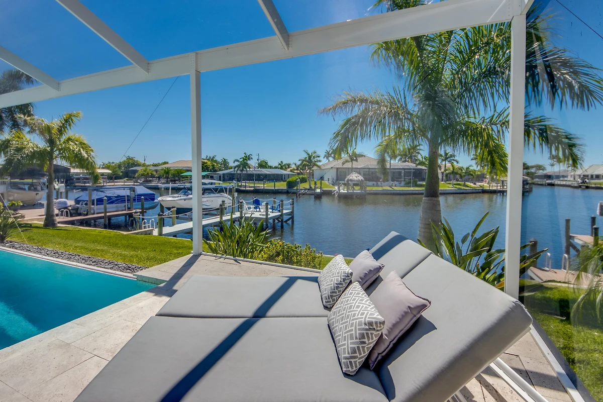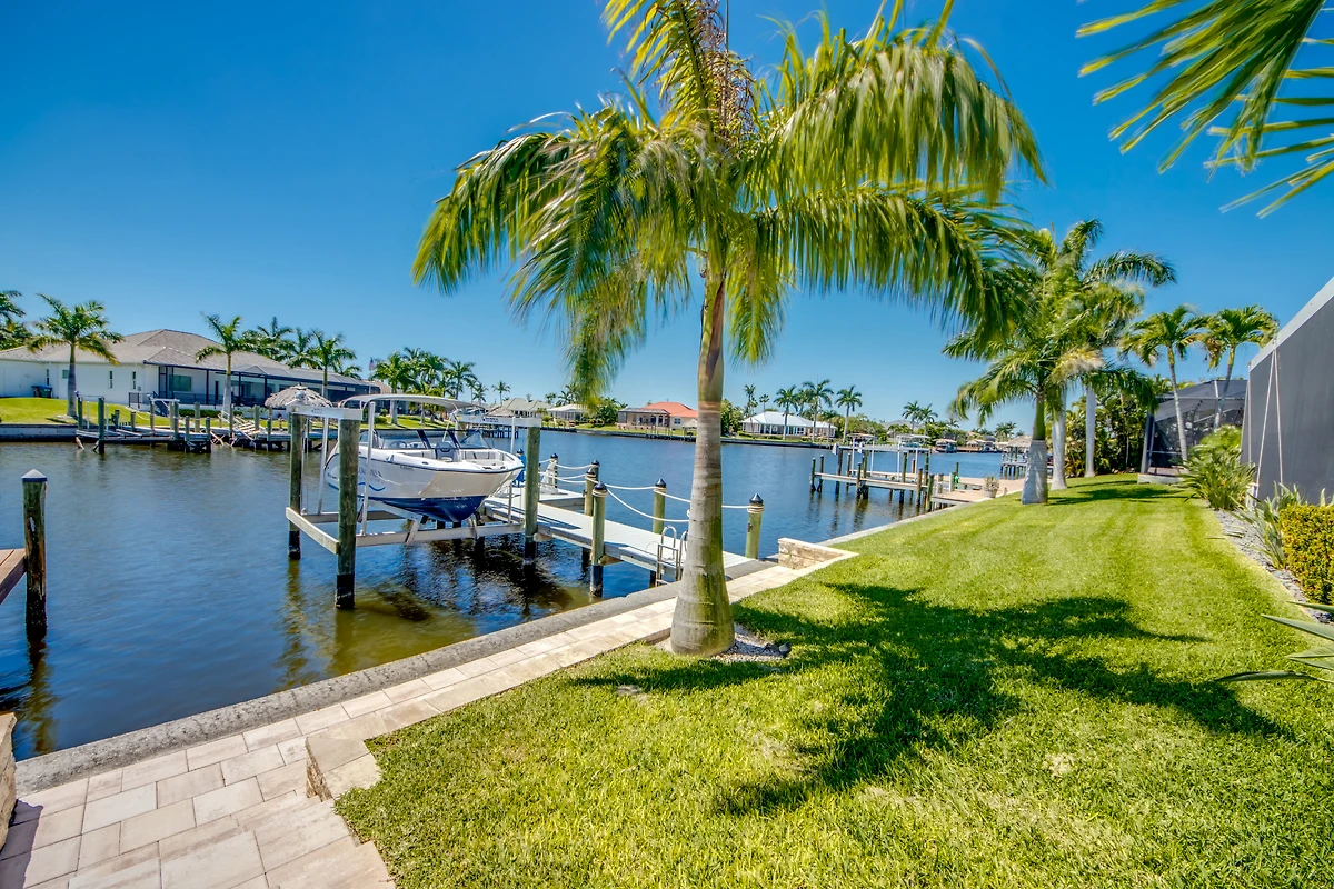 La villa si trova nella famosa zona sud-ovest di Cape Coral e si affaccia su un ampio canale.