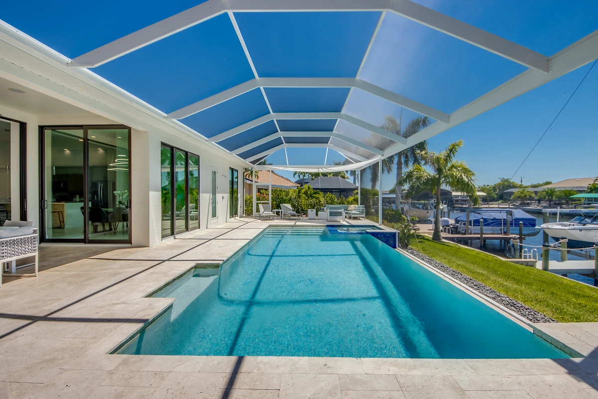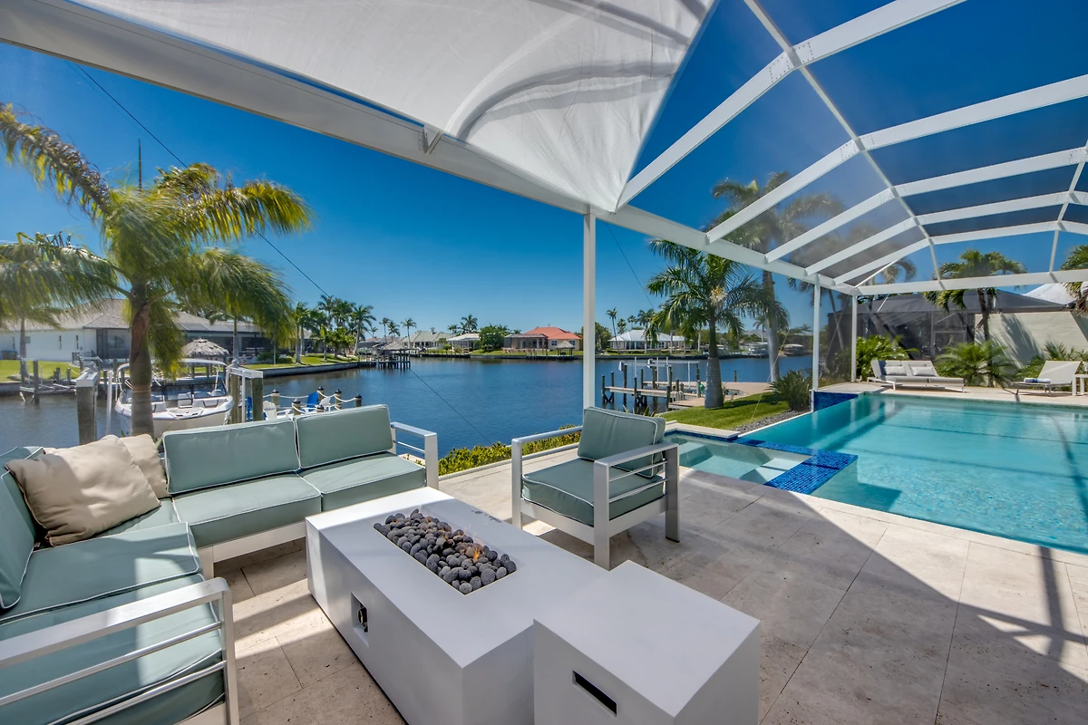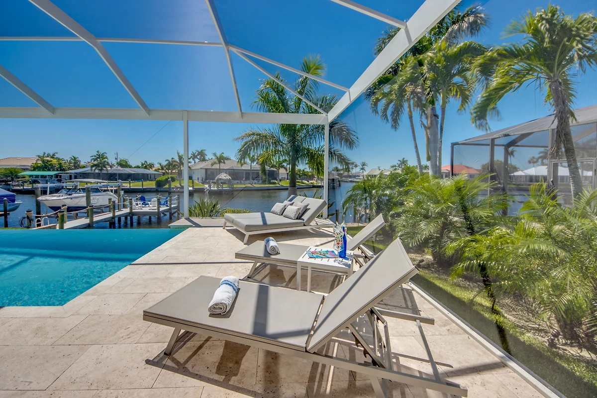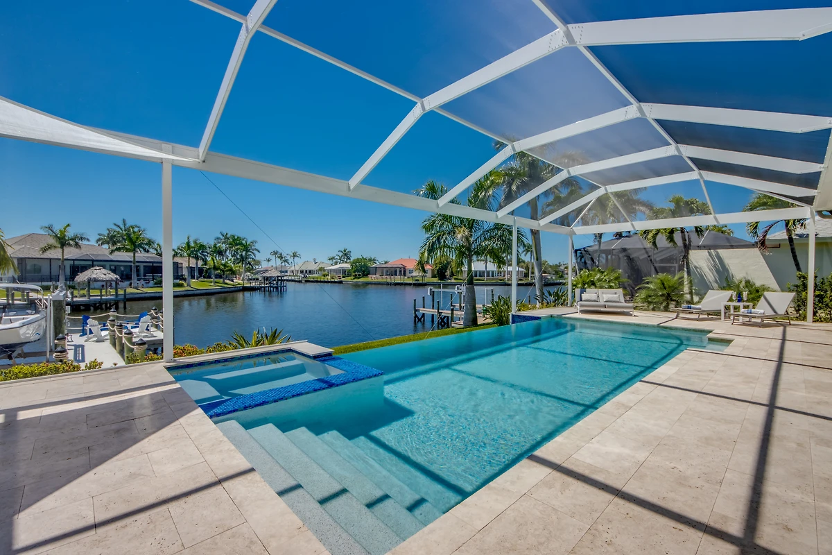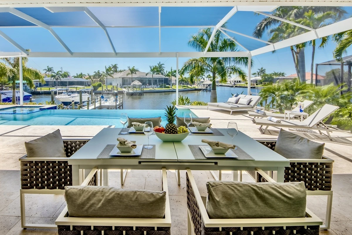La villa si trova nella famosa zona sud-ovest di Cape Coral e si affaccia su un ampio canale.