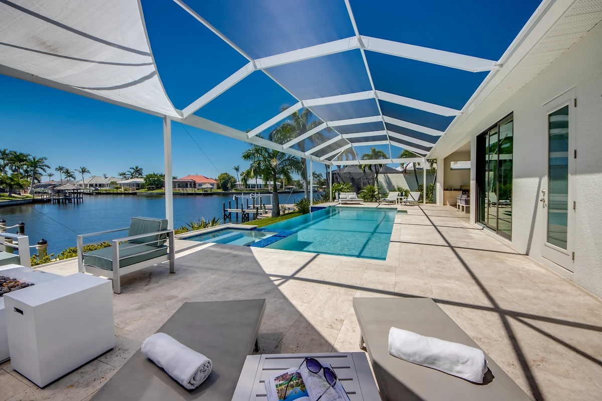 Cape Coral è conosciuta come la Venezia d'America per i suoi innumerevoli canali. Dall'aeroporto di Fort Myers circa 30 minuti e da Tampa 2 ore per raggiungere la casa. a 2,5 ore da Orlando con i suoi numerosi parchi come Sea World, Disney World o Universal Studios. 1 ora a sud, via Naples, per raggiungere le Everglades. Cape Coral ha la sua piccola spiaggia con Yacht Club. Le più famose, Fort Myers Beach, Sanibel o Captiva Island, sono raggiungibili in 35 minuti. Nella zona sono presenti numerose strutture commerciali. Il supermercato più grande e altri negozi sono raggiungibili in auto in 5 minuti. Grande centro commerciale e outlet a 20 minuti. Il parco acquatico Sun Splash si trova nelle immediate vicinanze. Cape Coral si trova tra le splendide isole di Captiva, Sanibel e Pine Island. Scoprite le spiagge di sabbia bianca simili a quelle dei Caraibi.