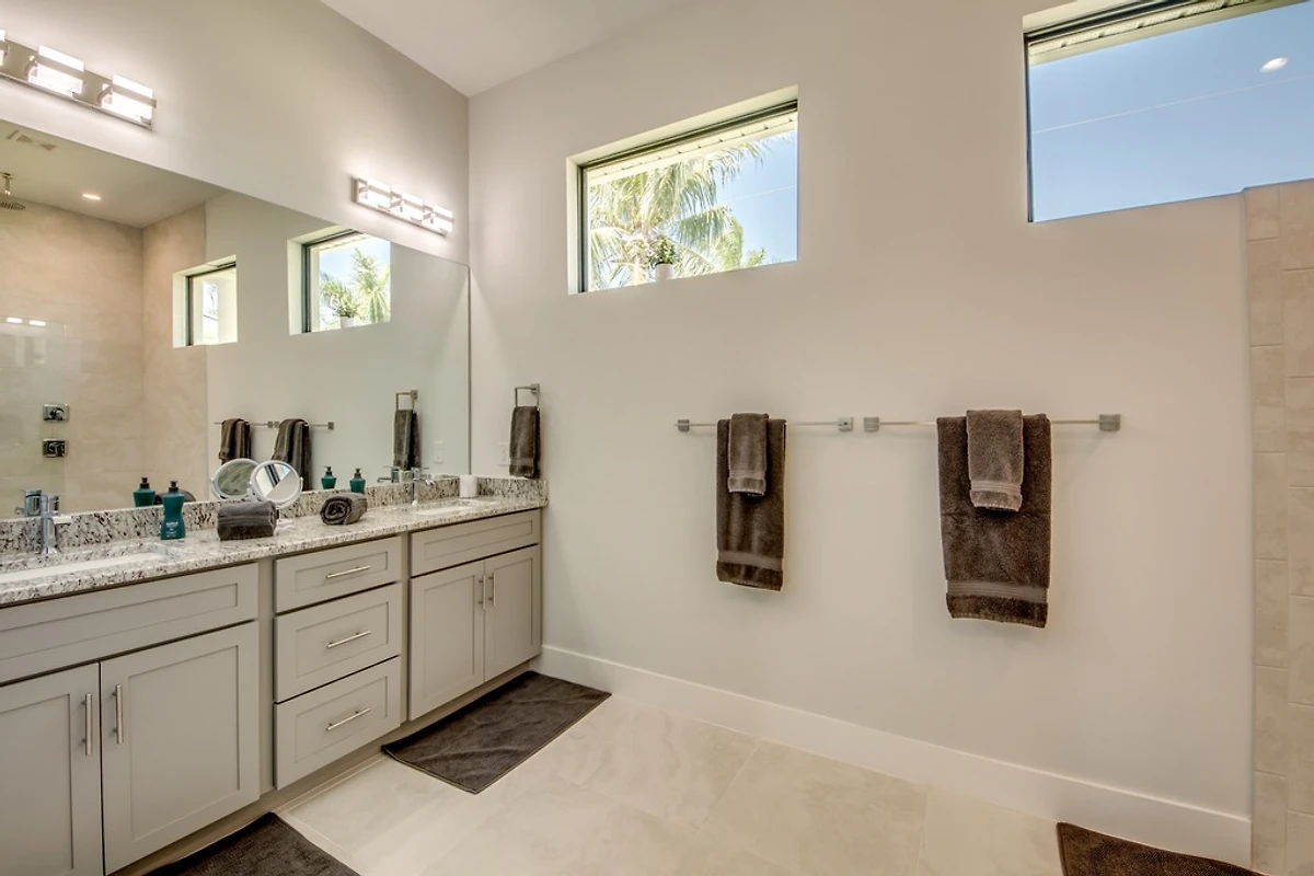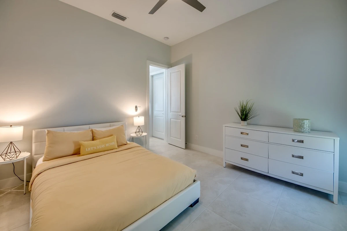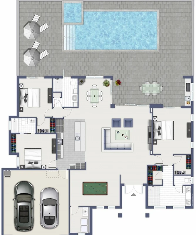 Tutte le camere da letto sono dotate di un letto king-size e dispongono di un bagno privato. Uno dei bagni dispone inoltre di una moderna vasca da bagno, che invita al relax. Gli altri due bagni sono dotati di doccia a filo pavimento. Le grandi porte scorrevoli in vetro della villa offrono una vista spettacolare sul largo canale. Accanto all'area soggiorno aperta si trova il tavolo da biliardo, dove potrete trascorrere serate di gioco indimenticabili.