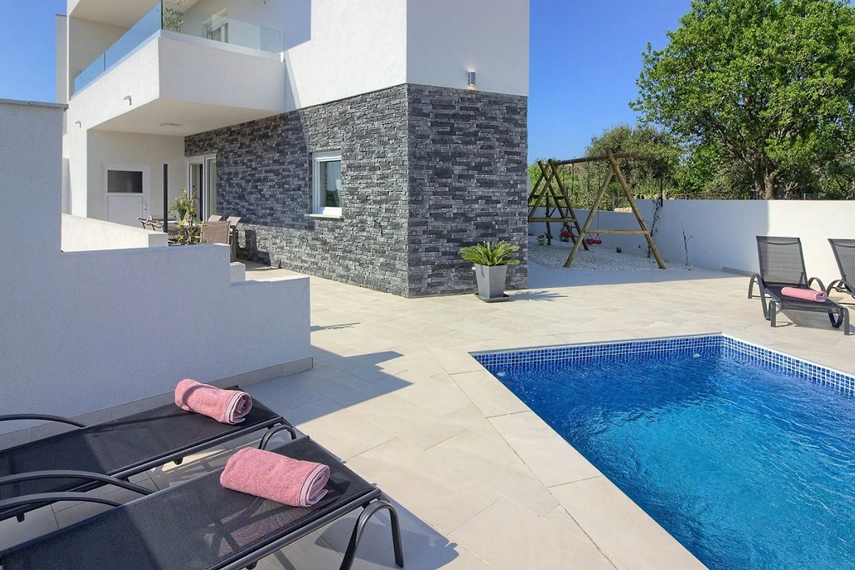 Villa White Jasmin a Medulin è una nuova casa vacanza moderna con piscina con vista sulla campagna del villaggio di Medulin. La villa può ospitare fino a 6 persone. Questa meravigliosa casa vacanze si trova in una zona tranquilla di Medolino e offre una vacanza rilassante. Al piano terra si trova la cucina, soggiorno con zona pranzo, mentre al primo piano ci sono due camere da letto, ognuna con bagno privato con doccia. Dal soggiorno è possibile accedere alla terrazza dove è possibile gustare la colazione, il pranzo o la cena. La piscina e il parco giochi per bambini si trovano accanto alla terrazza all'aperto. La città di Medolino è rinomata per l'escursionismo, le piste ciclabili, il surf, le immersioni e molti altri sport. Lungo la costa c'è un bellissimo lungomare con numerosi bar sulla spiaggia, ristoranti, parco per famiglie e discoteche. Il nostro consiglio è di visitare la città principale di Pola famosa per il suo anfiteatro romano. Nell'anfiteatro è possibile assistere a concerti di musicisti di fama mondiale e altri eventi che si svolgono durante i mesi estivi.