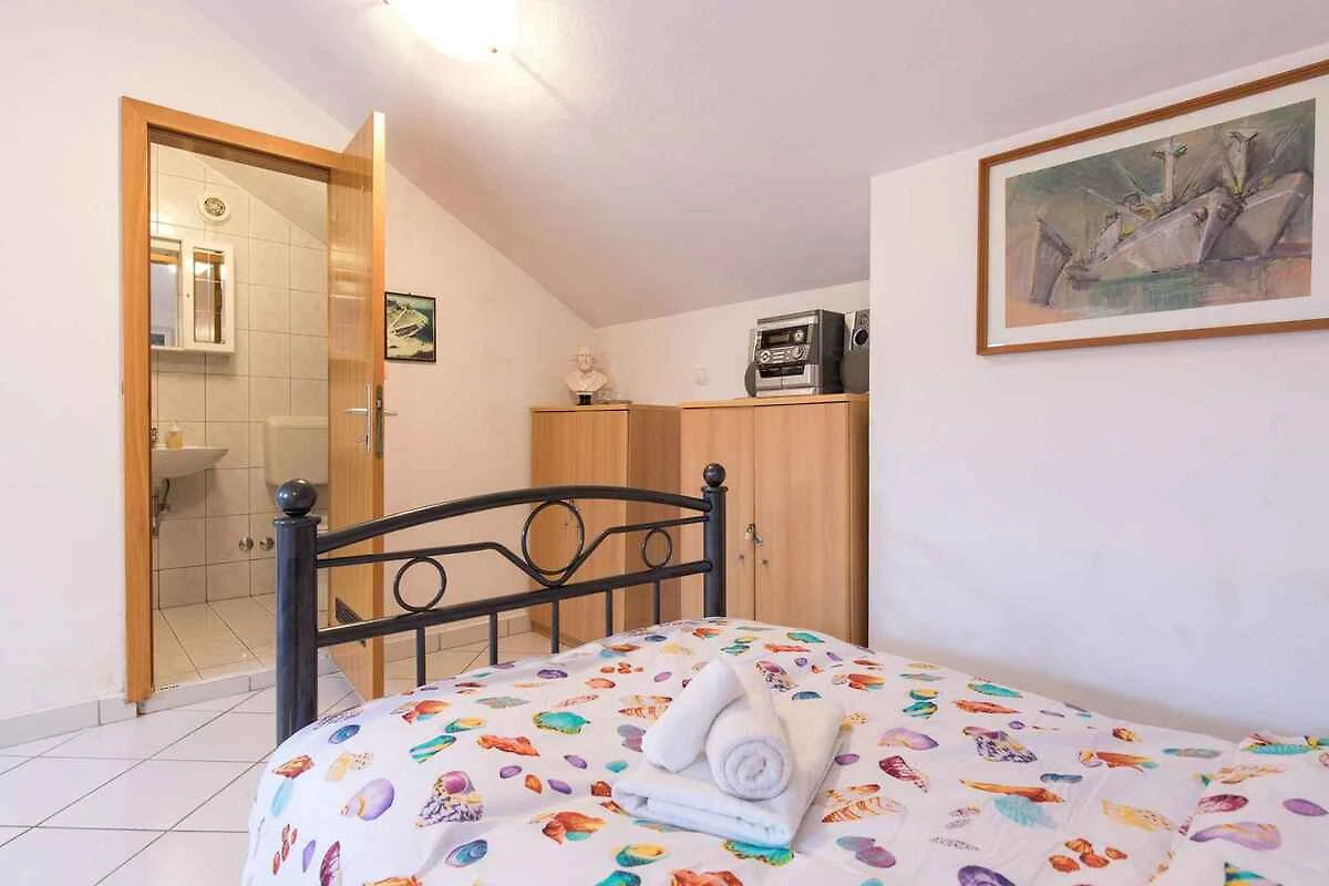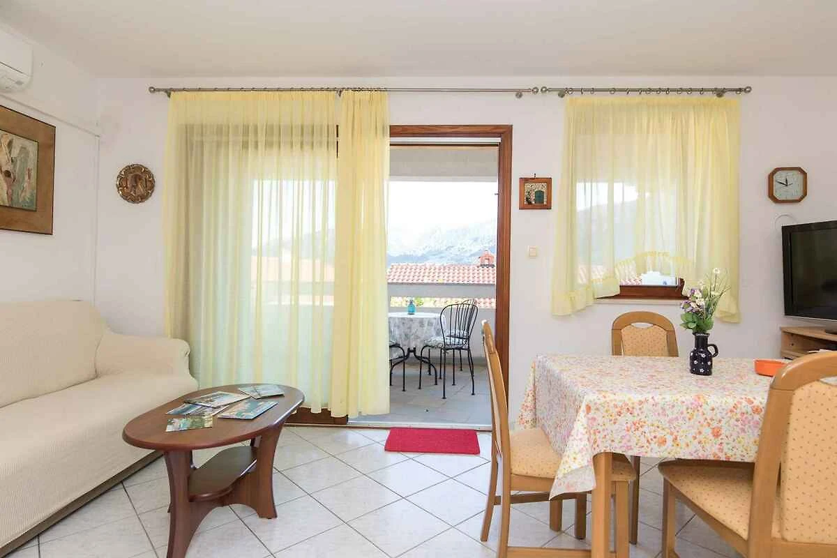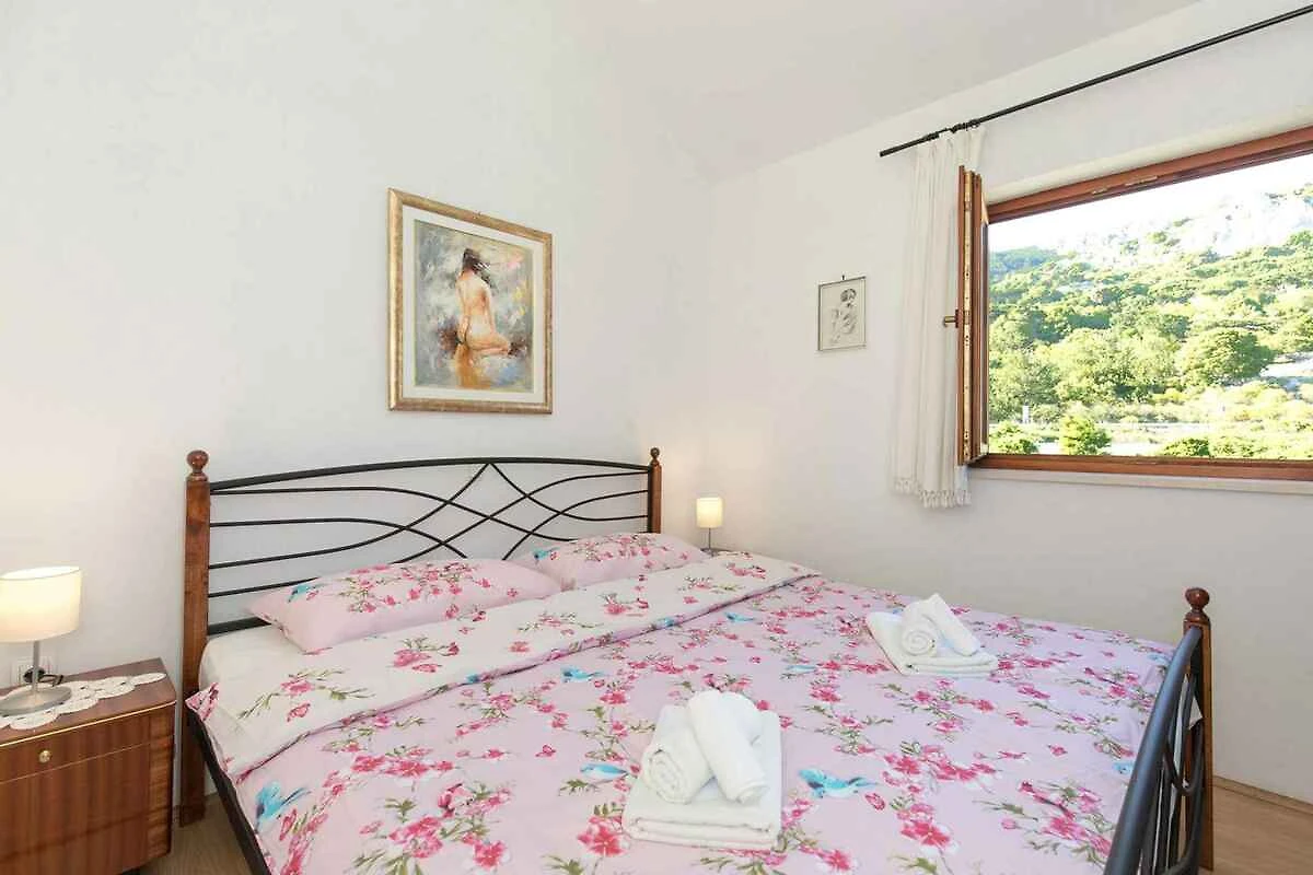 Baška. L'appartamento per vacanze si trova su un terreno di giardino aperto con fiori e arbusti. Il locatore non abita nella casa o sulla proprietà. L'accesso avviene tramite una strada secondaria (asfaltata, lunghezza 8 m). Parcheggio (per 1 auto) sulla proprietà.