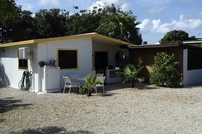 Cas Kenepa è una casa accogliente con un ampio portico e cucina esterna.