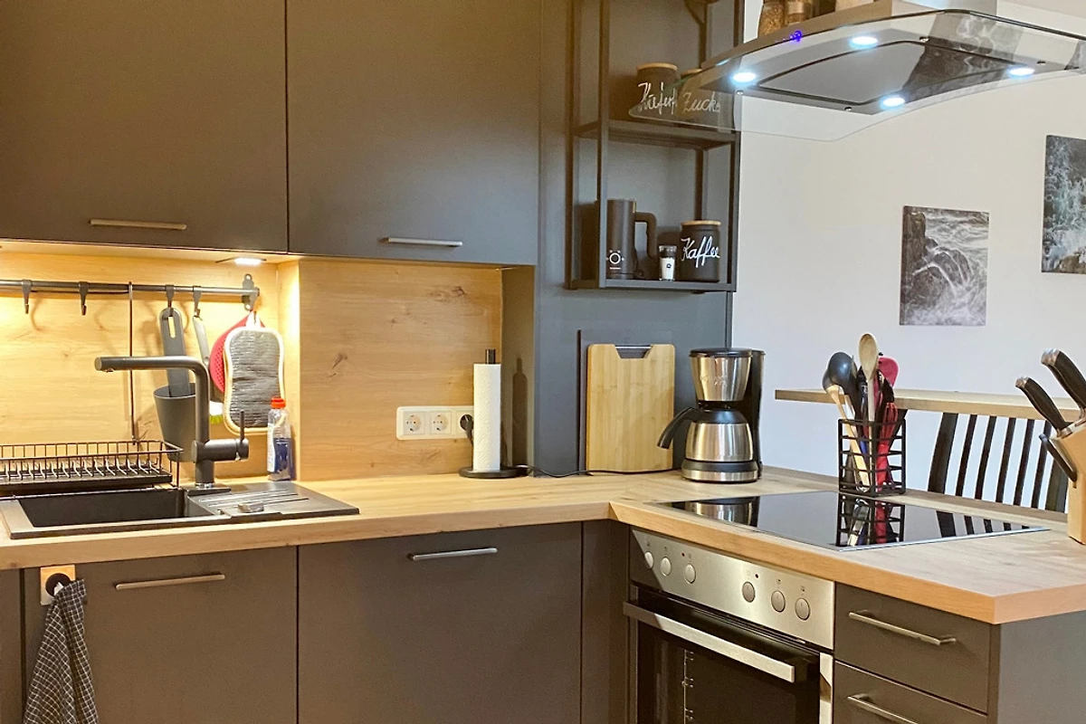 NUOVO! Appartamento "Outside Pfui - Inside HUI" Un nome particolare che rallegra e incuriosisce, l'appartamento è stato completamente ristrutturato all'interno. Tuttavia, l'esterno della casa (costruita nel 1974) e le strutture esterne non sono ancora state ristrutturate e quindi non corrispondono a un livello contemporaneo adeguato al design degli interni. Per questo motivo i proprietari, con autoironia, hanno deciso di fuggire in avanti - e hanno optato per questo divertente nome dell'appartamento. Fino a quando le strutture esterne non saranno rinnovate, potrete beneficiare di un prezzo di affitto basso. Cane di media taglia su richiesta! Accogliente appartamento con 2 camere da letto per 2-3 persone Moderno appartamento per le vacanze nell'Aartal a Schwalefeld. Il centro del paese di Schwalefeld, con la sua gastronomia e il suo negozio, dista 500 metri. Il centro di Willingen dista 4 km. Il lago Diemel è a soli 10 minuti di auto (12 km). Quindi, se cercate comfort, pace e natura lontana da voi - ma comunque vicina alla vivace località turistica di Willingen, siete nel posto giusto! Dotazione dell'appartamento: Questo appartamento convince per il suo buon rapporto qualità-prezzo con interni moderni e buone dotazioni - Soggiorno con TV satellitare e divano letto.