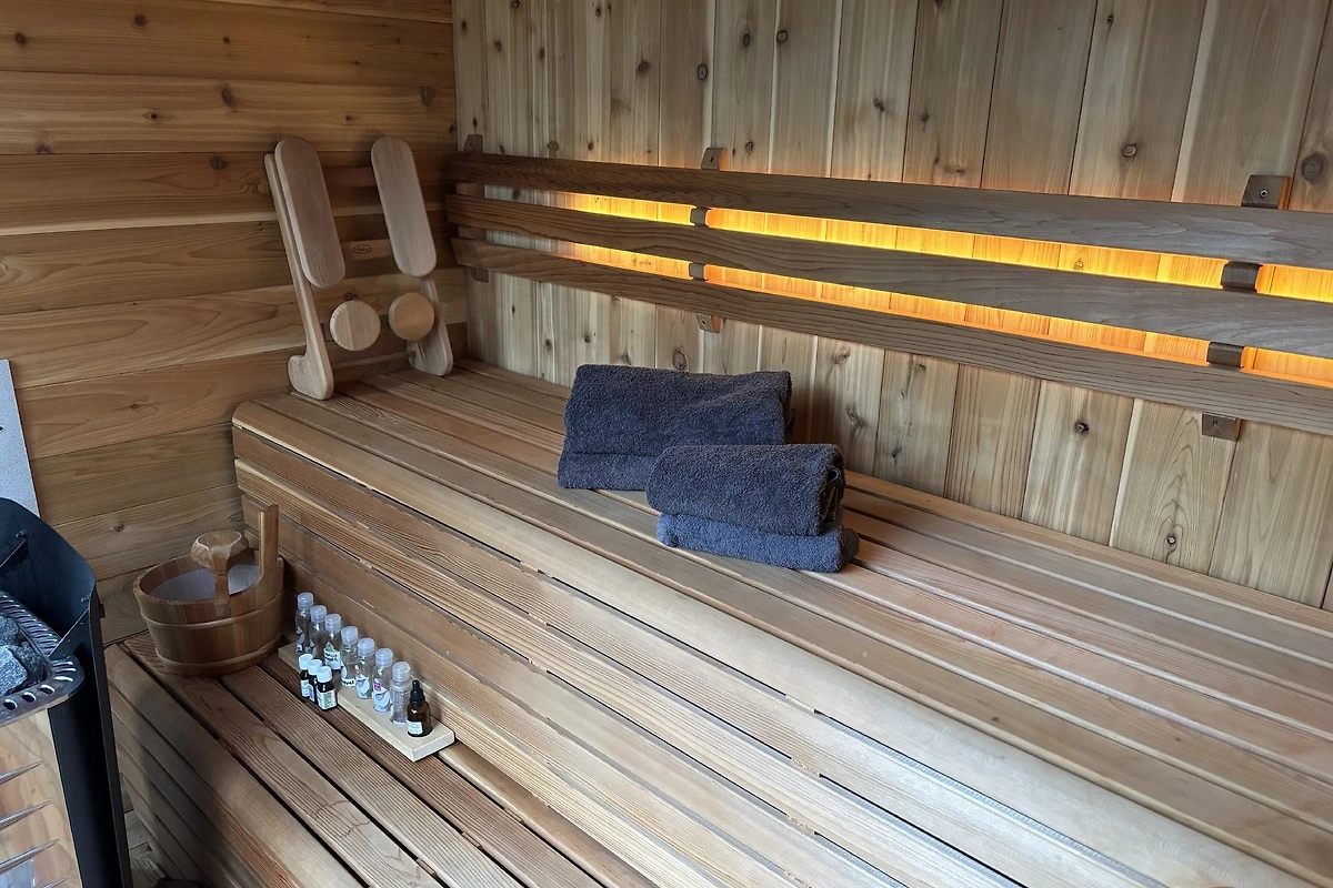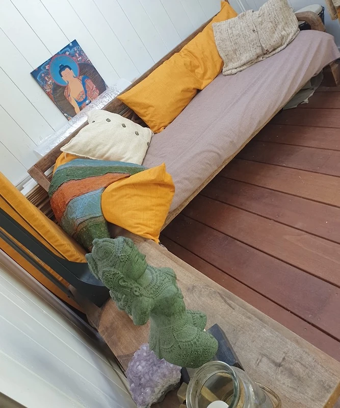 Casa di 130 m2, con tre camere da letto e una sala yoga completamente attrezzata. Due bagni, cucina aperta e ampio soggiorno. Una verranda con pavimento in legno duro.