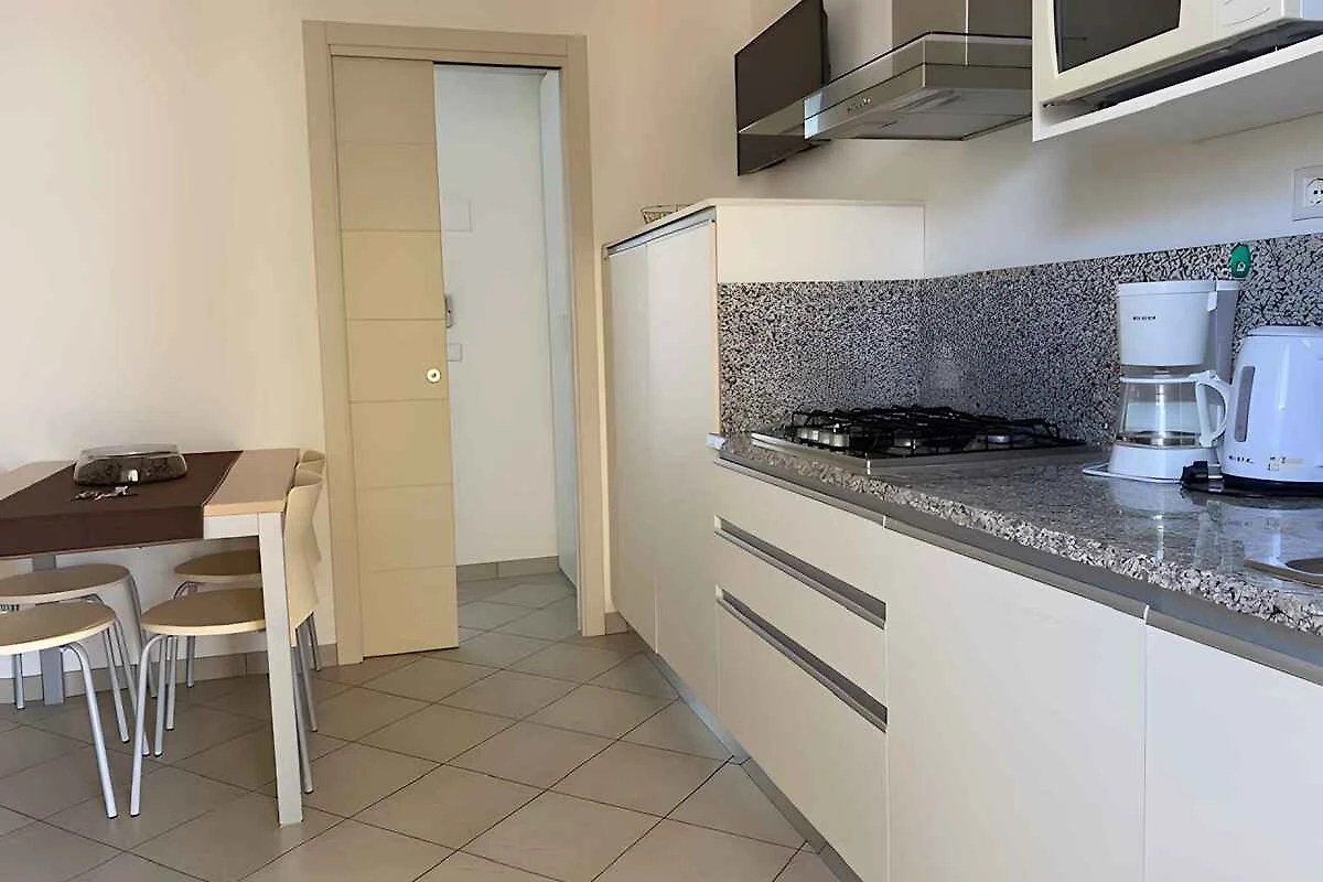 Bibione. L' appartamento vacanze si trova in un residence, in una proprietá chiuso, delimitata da una recinzione. Parcheggio (per 1 auto) sulla proprietà.