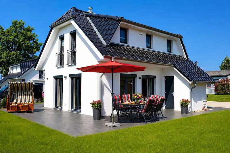 L'ampia proprietà recintata di circa 500 m², composta da terrazza e prato, offre spazio sufficiente per giochi, divertimento o barbecue comuni per tutta la famiglia. Internet (WLAN) è disponibile nella casa e può essere utilizzato gratuitamente. Per i più piccoli sono disponibili un seggiolone e un lettino da viaggio. La casa vacanze è un alloggio per non fumatori e tutte le camere sono dotate di riscaldamento a pavimento. La lavatrice può essere utilizzata gratuitamente. L'asse da stiro, il ferro da stiro e lo stendibiancheria portatile fanno parte della dotazione. La struttura dispone anche di un deposito biciclette con serratura per le biciclette che portate con voi. Se viaggiate in auto, avete a disposizione un posto auto gratuito proprio di fronte all'appartamento. Numerosi percorsi ciclabili ed escursionistici offrono agli amanti della natura molte opportunità per esplorare lo Schaabe, la penisola di Wittow, Capo Arkona e il villaggio di pescatori di Vitt. A soli 500 metri di distanza si trova anche un noleggio di biciclette. Nelle immediate vicinanze si trovano negozi (il vero mercato dell'isola), panetterie e ristoranti (con prima colazione). Il porto di Breeger, a circa 400 m di distanza, offre possibilità di escursioni in nave all'isola di Hiddensee, gite a Bodden, gite con le gru e al Festival di Störtebeker. Nella località balneare si trova anche una scuola di vela. Gli animali domestici non sono ammessi per rispetto dei soggetti allergici.