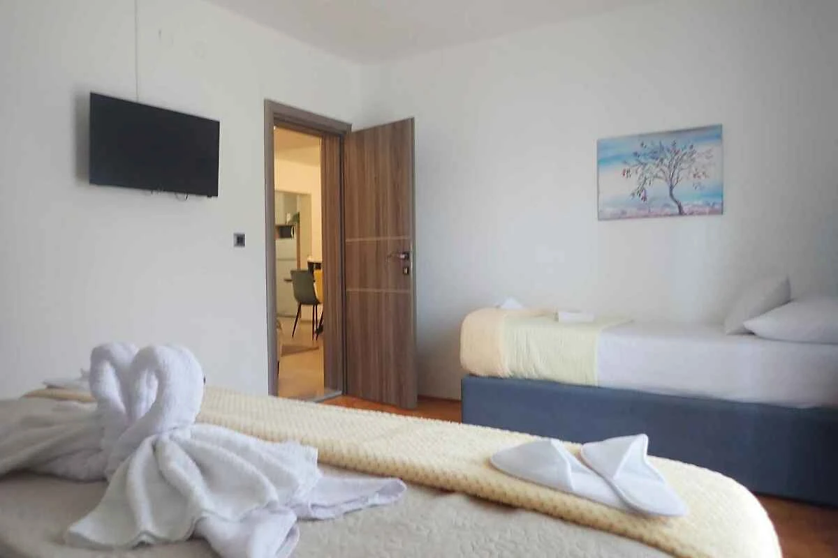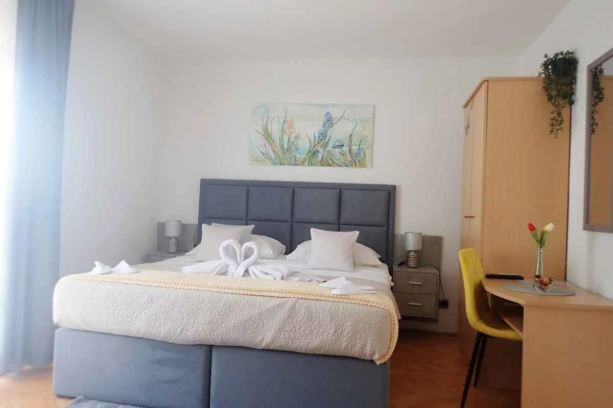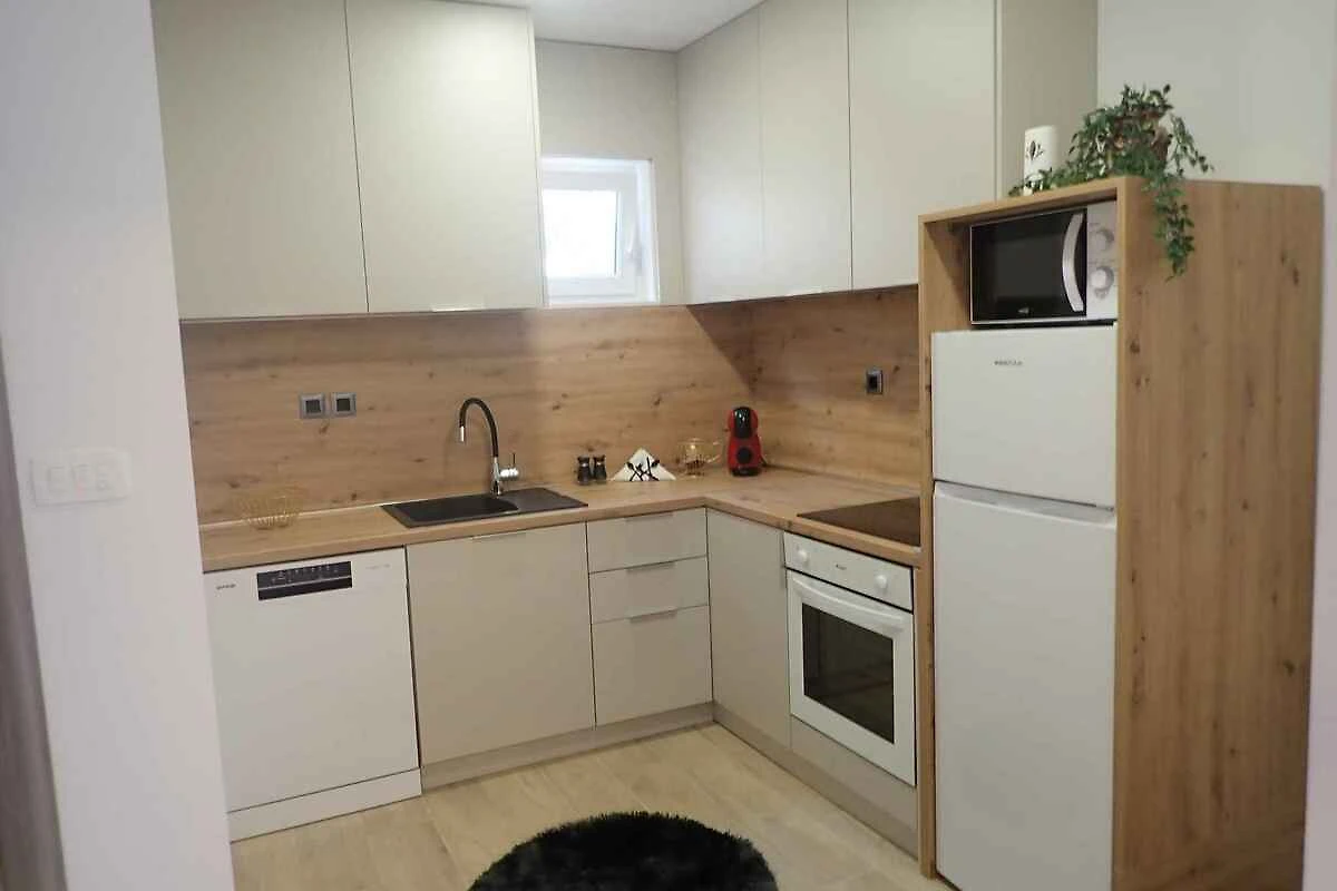 L' appartamento vacanze si trova in una casa unifamiliare, indipendente, costruito nel 1989, è stato rinnovato nel 2024 ed è arredato moderno. La proprietà si trova in una zona residenziale, in periferia. Anche a causa della vista dalla struttura sul mare e tranquilla e soleggiata posizione, il domicilio è popolare. Attrezzature in comune: lettino da sole, possibilità di grigliare, terrazza, mobili da giardino e fattoria.