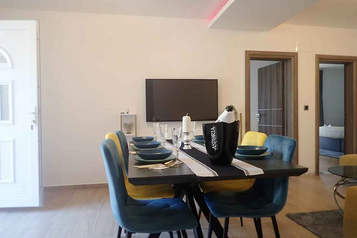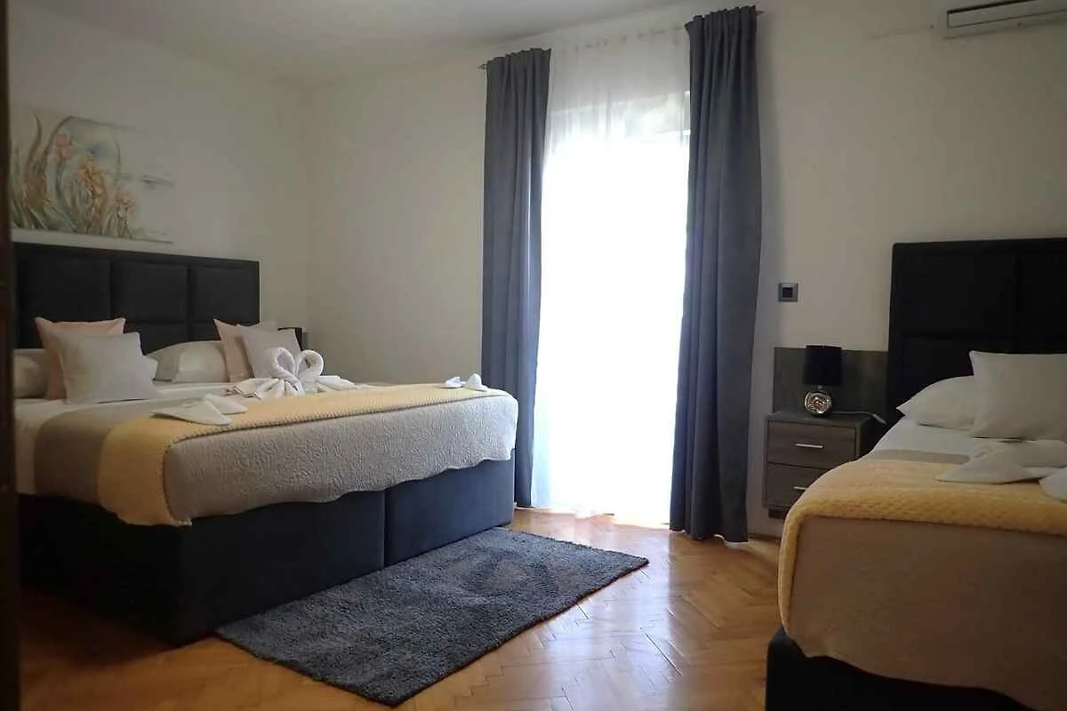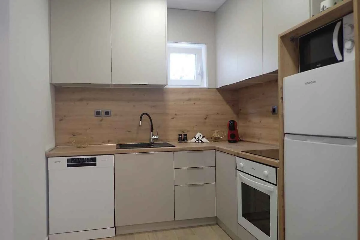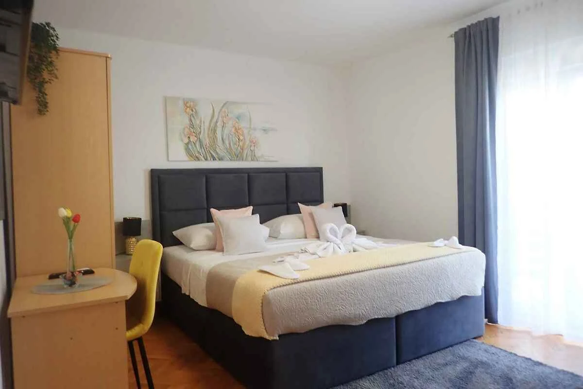 L' appartamento vacanze si trova in una casa unifamiliare, indipendente, costruito nel 1989, è stato rinnovato nel 2024 ed è arredato moderno. La proprietà si trova in una zona residenziale, in periferia. Anche a causa della vista dalla struttura sul mare e tranquilla e soleggiata posizione, il domicilio è popolare. Attrezzature in comune: lettino da sole, possibilità di grigliare, terrazza, mobili da giardino e fattoria.