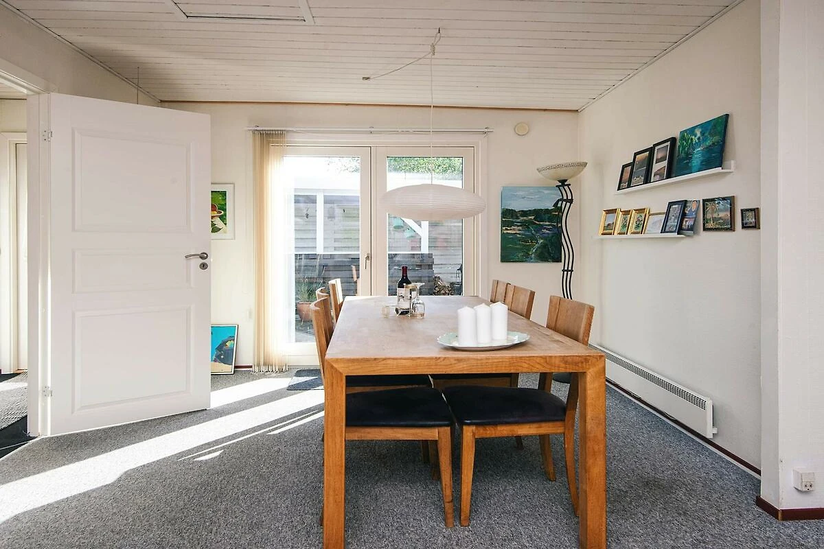 Casa vacanza ca. 800 m da Hemmet Strand dal fiordo di Ringkøbing. L'esperienza di vacanza qui sarà basata sulla cucina aperta / soggiorno / soggiorno, da cui provengono le altre stanze della casa. Cucina con i.a. piano cottura in vetroceramica, frigorifero, microonde e lavastoviglie. Nel soggiorno troverete i.a. TV e radio con lettore CD. La casa è riscaldata con riscaldamento elettrico, pompa di calore aria/aria e stufa a legna. Da una camera da letto si accede alla parte del giardino esposta a ovest. Bella terrazza in legno esposta a sud con un buon riparo. A poche centinaia di metri dal parco giochi comune. Non in affitto a gruppi di giovani.