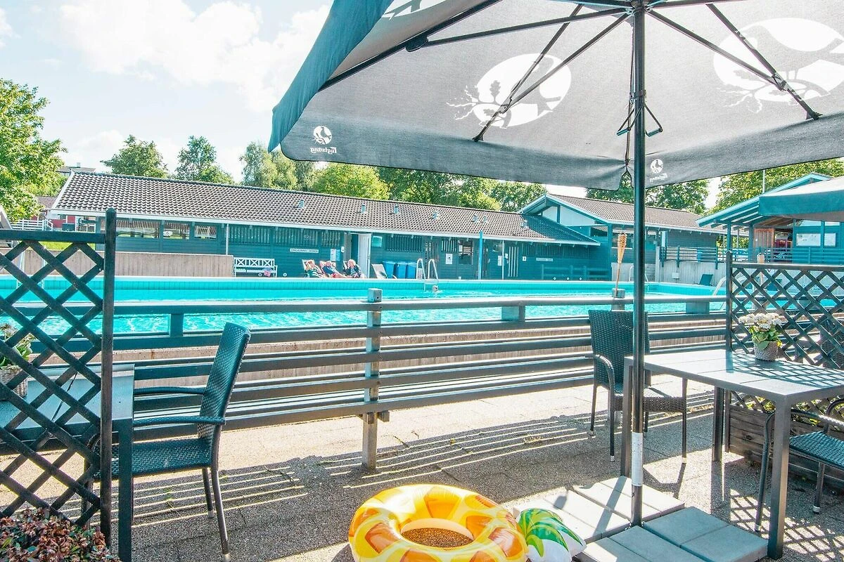 , Angolo cottura(mobile cucina(elettrico), cappa aspirante, caffettiera, lavastoviglie, frigo con congelatore), Soggiorno/camera da letto(TV(cavo, canali televisivi tedeschi, canali TV danesi), lettore DVD, radio), Camera da letto(letto matrimoniale), Camera da letto(2x letto singolo), Bagno(vasca o doccia, lavabo, WC), riscaldamento(elettrico), terrazza, giardino, barbecue, piscina(in comune con altri ospiti, all'esterno)