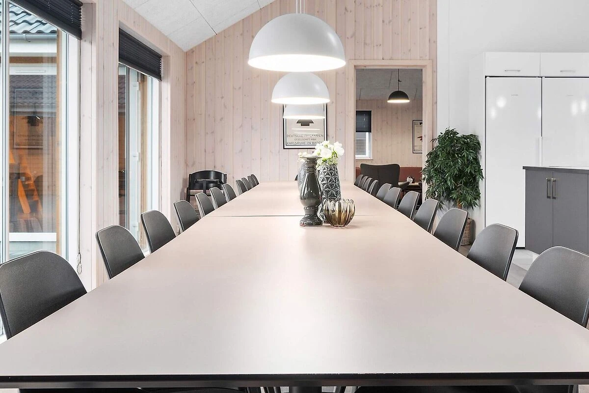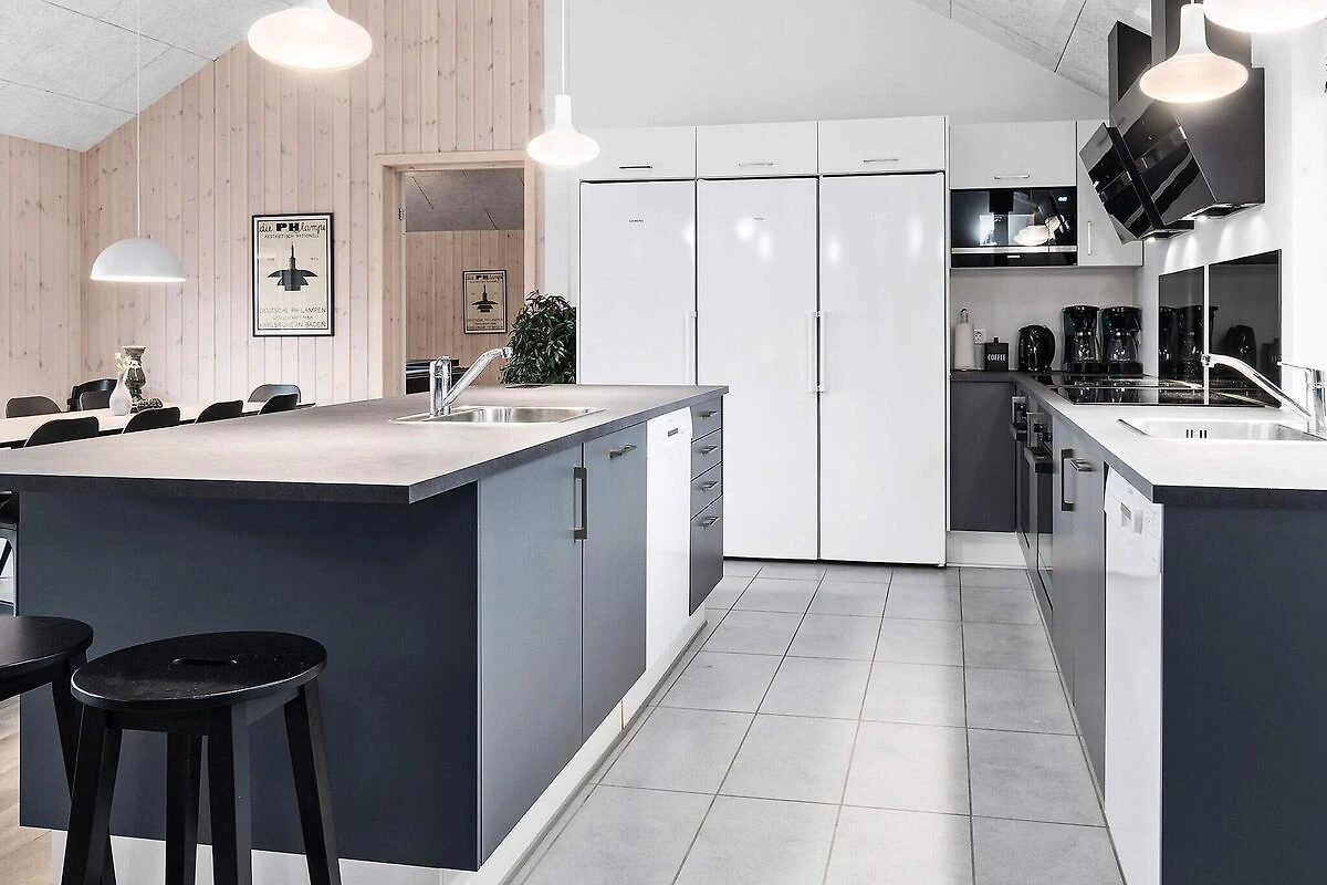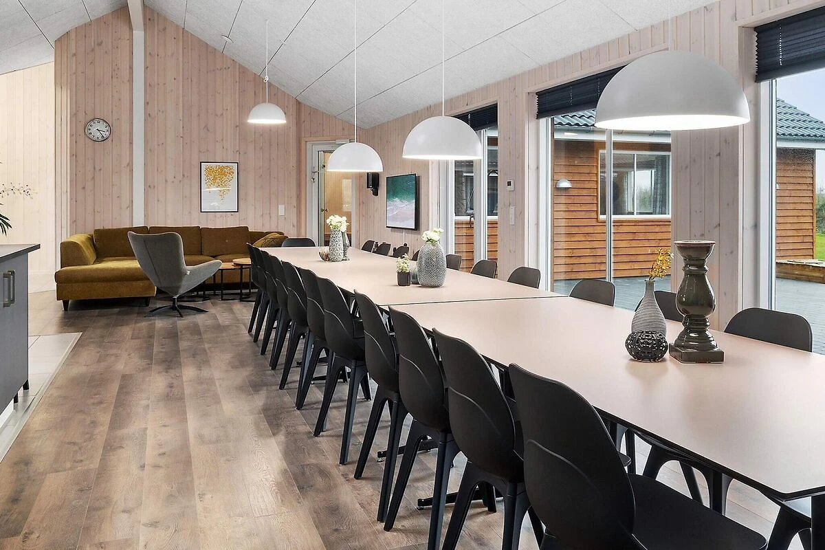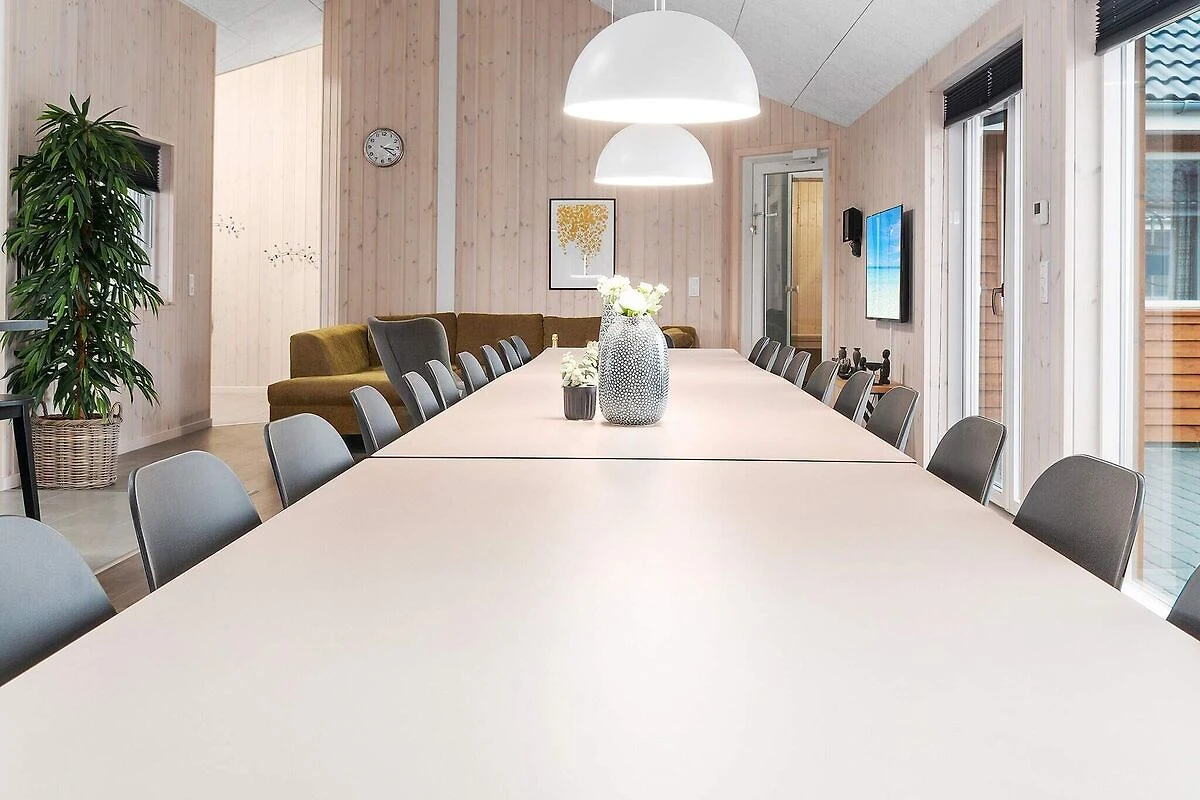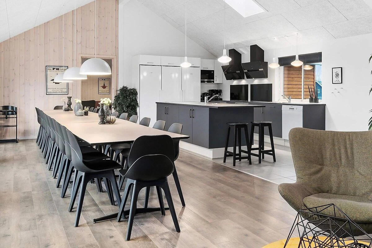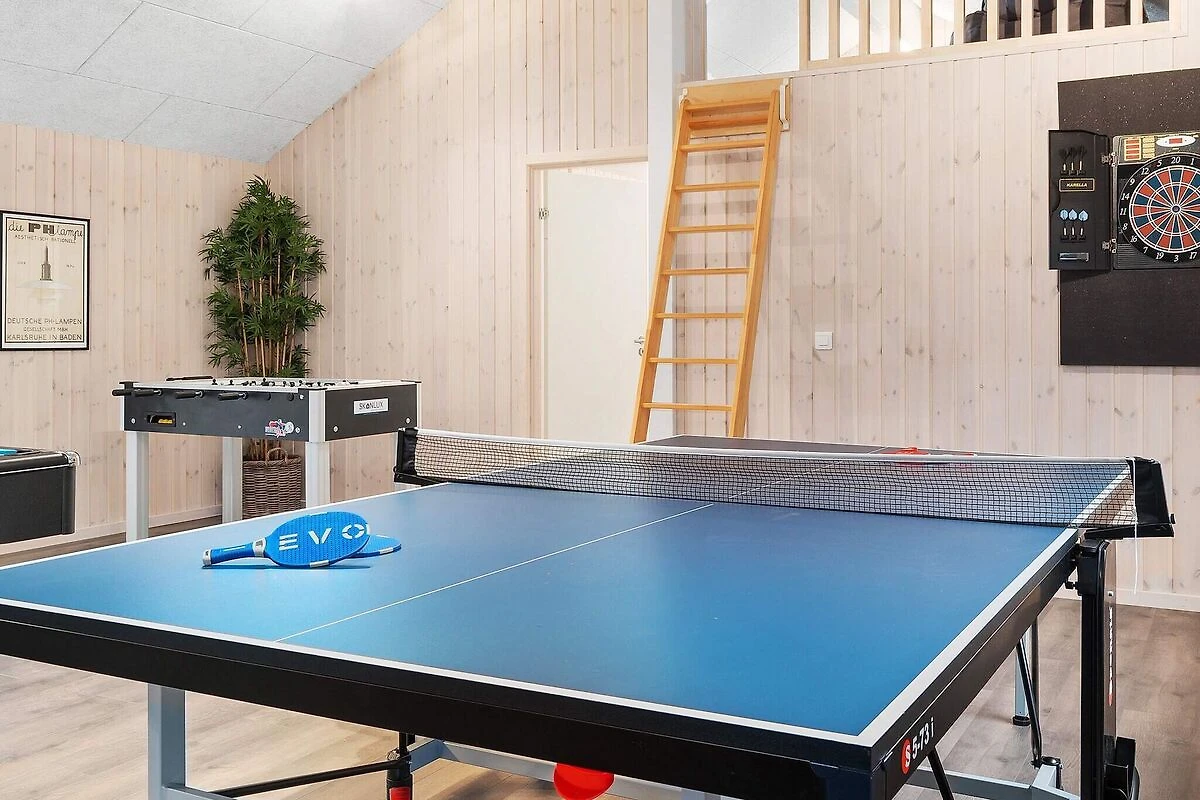Questa casa di attività Skanlux ben arredata contiene semplicemente tutto ciò che il cuore può desiderare in termini di attività e opportunità di sviluppo. La casa è adatta anche per compleanni di famiglia, cresime, matrimoni ed eventi aziendali. E se siete moltissimi, avete la possibilità di affittare anche una delle case vicine, anch'esse ben attrezzate e arredate con tante camere da letto. L'ampia zona piscina contiene una grande piscina con impianto controcorrente, faro subacqueo e scivolo, una sauna, un bagno e una grande vasca idromassaggio con spazio per 4-6 persone. Nella sala attività, alcuni possono divertirsi al bar, mentre altri giocano a biliardo al tavolo da biliardo. Qui puoi anche guardare film in DVD o sfidarti a ping pong, freccette e calcio balilla o gareggiare in vari giochi elettronici su Playstation4. La casa è estremamente spaziosa e ben dimensionata e costruita intorno a 3 zone notte separate. Ogni zona notte è dotata di bagno, inoltre c'è un ulteriore bagno nella zona piscina. I letti singoli possono essere uniti in un letto matrimoniale. La zona pranzo/soggiorno è arredata con gusto con stereo con lettore CD, TV a schermo piatto, zona divani e stufa a legna. La cucina è attrezzata con 2 piastre in vetroceramica, 2 forni separati, 2 frigoriferi, 2 macchine da caffè e 2 lavastoviglie. La casa dispone di 9 camere da letto e 2 soppalchi ampi e spaziosi. Ci sono materassi a molle in tutte le camere e sui soppalchi. La casa è riscaldata da una pompa di calore a risparmio energetico. Ampia terrazza solarium all'aperto e terrazza coperta con barbecue - perfetta per un'accogliente serata barbecue con la famiglia e gli amici. \ Tieni presente che il funzionamento della piscina, nonché l'uso del sistema controcorrente, della sauna e della spa porta a un aumento dei consumi di elettricità e acqua. A seconda della stagione e dell'utilizzo, un consumo di ca. 20 & # 8211; 30 euro al giorno. Si prega di notare che le foto sono prese da una casa simile. *** Alcune case sono ancora in costruzione nella zona e vicino alla casa. Pertanto, a volte possono esserci problemi di costruzione come. rumore e polvere *** *** Informazioni importanti: De