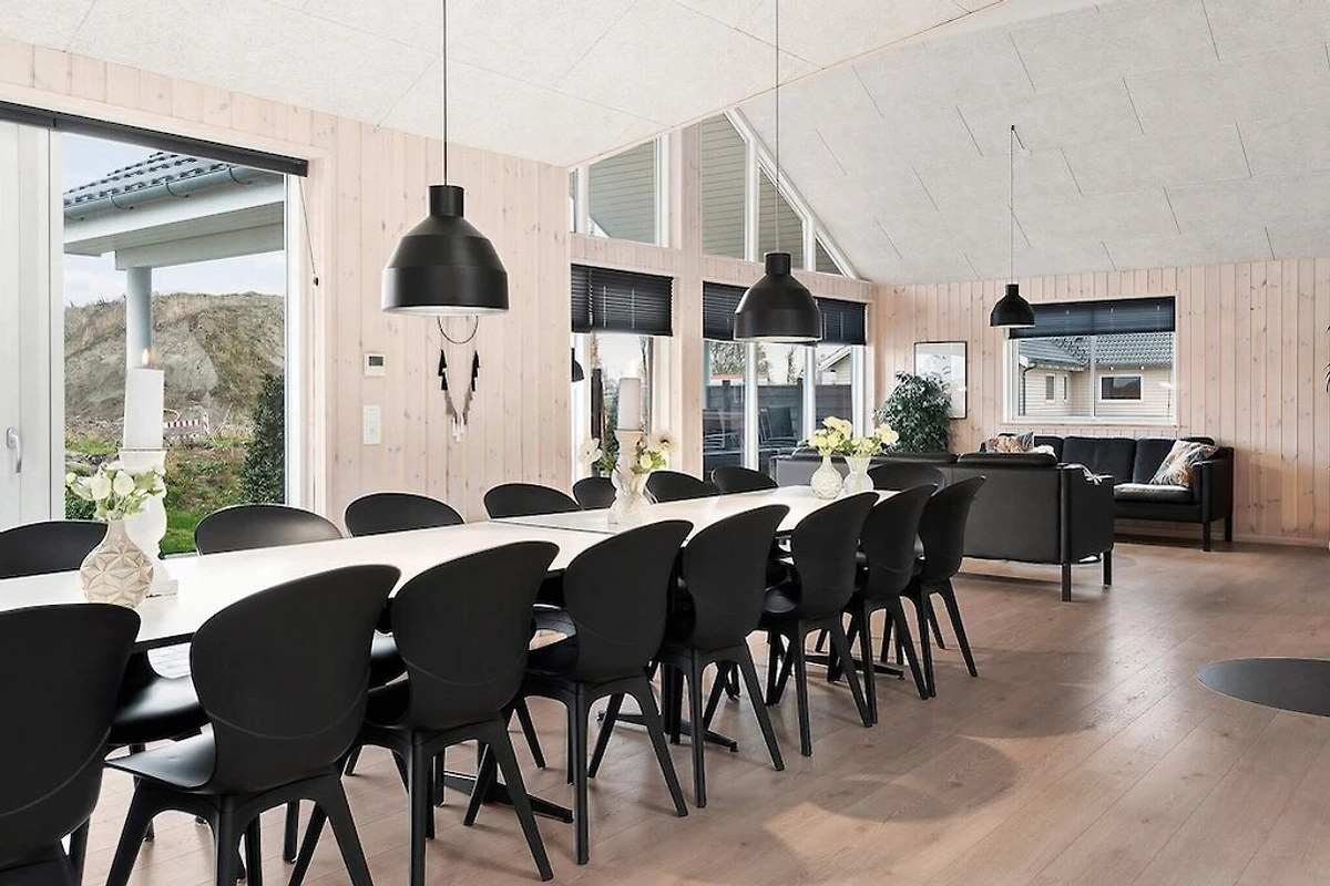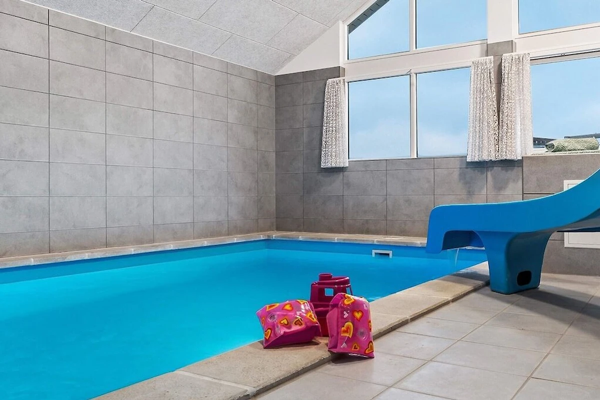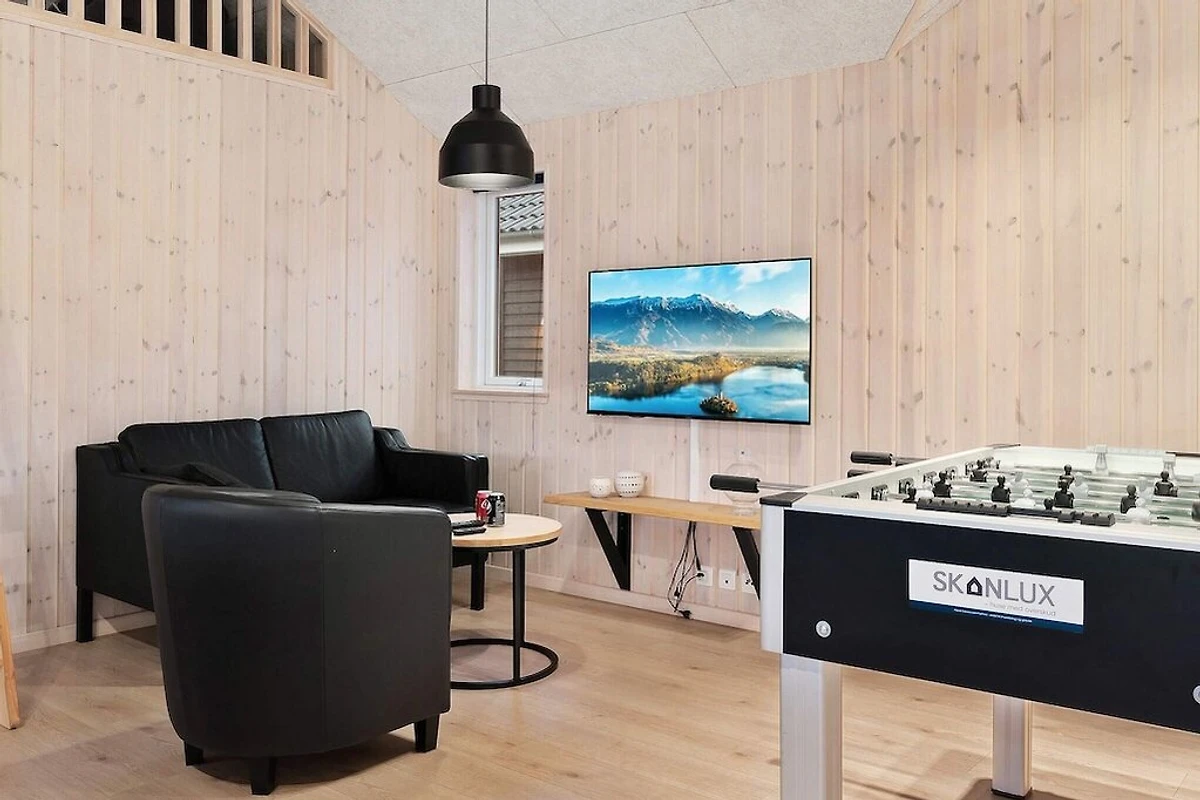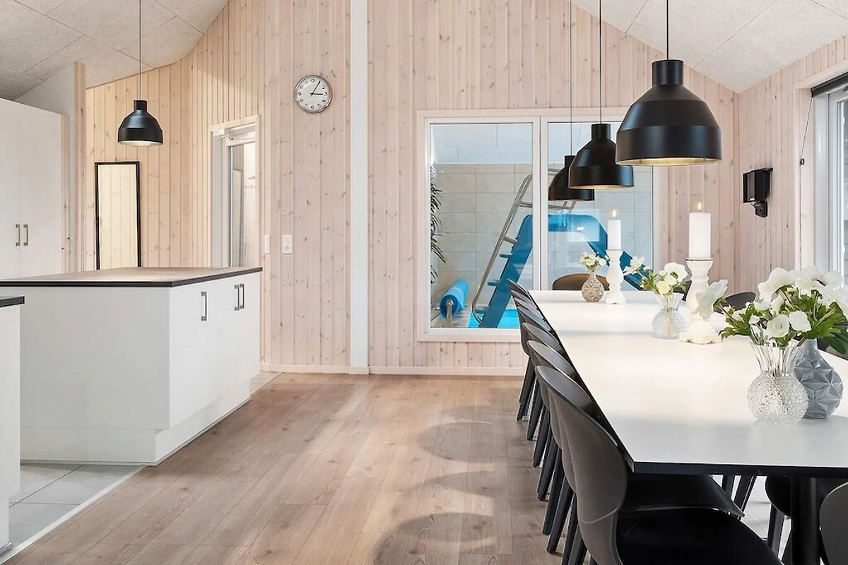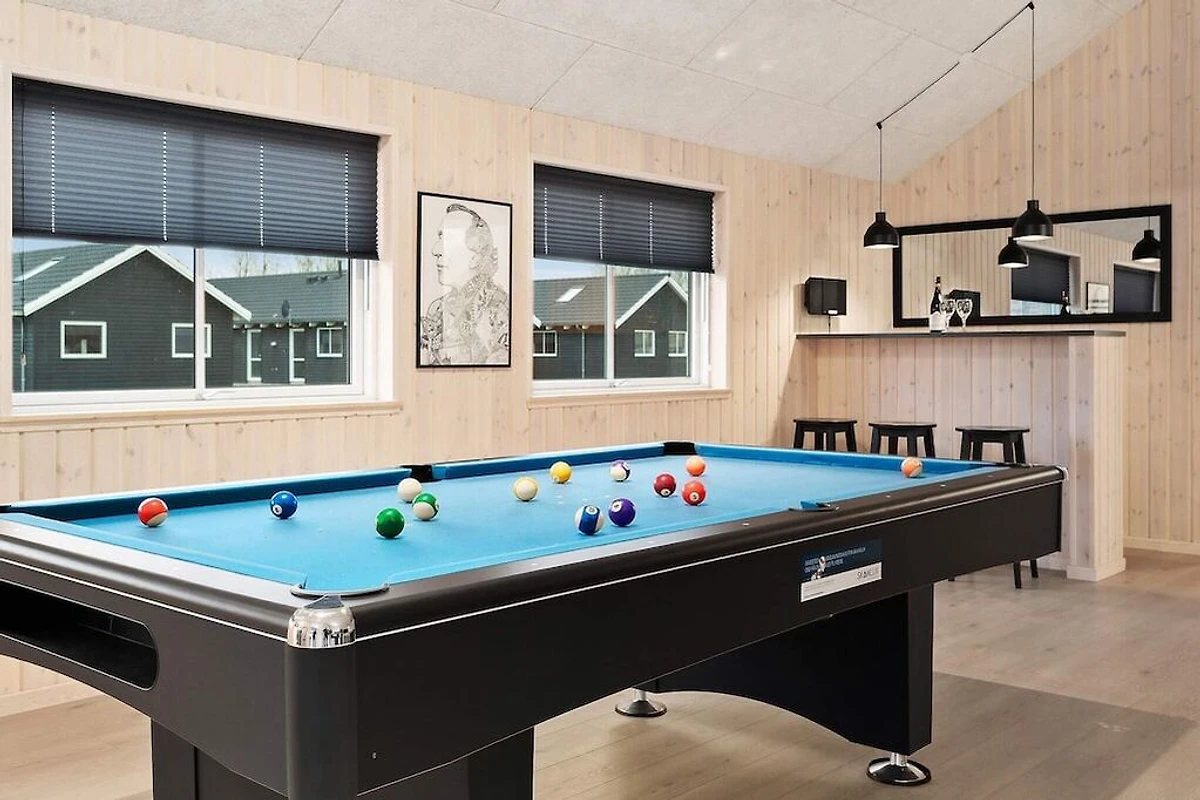 Accogliente cottage per attività Skanlux situato a poco più di 900 m dalla spiaggia sabbiosa dell'Ostsee Resort Olpenitz. La casa è arredata con mobili e servizi moderni che la rendono perfetta per la vacanza in famiglia. La casa ha una sezione piscina, che contiene sia una grande piscina, uno scivolo d'acqua, un grande idromassaggio integrato e una sauna con spazio per 4-6 persone. La piscina è 18m & # 178; e con acquascivolo per i bambini. La piscina dispone anche di un impianto controcorrente, così per tutta la settimana potrete migliorare la vostra condizione con il nuoto quotidiano abbinato al puro relax nell'idromassaggio e nella sauna, che si trova anche nella sala biliardo. La casa è estremamente spaziosa e ben dimensionata e costruita intorno a due zone notte separate. Ogni sezione ha un bagno, così come c'è un bagno aggiuntivo in connessione con la sezione della piscina. I letti singoli possono essere uniti in un letto matrimoniale. Tutta la casa dispone di riscaldamento a pavimento. La sala da pranzo/soggiorno è arredata con gusto con impianto stereo con lettore CD, TV a schermo piatto, lettore DVD, seggiolone, zona divano e stufa a legna. La casa dispone di 7 camere da letto. Inoltre, spazioso soppalco. La cucina è dotata di i.a. 2 fornelli, 2 forni, 2 macchine da caffè e 2 lavastoviglie. Nella sala attività, adulti e bambini possono divertirsi con biliardo, ping pong, freccette, PS4 e calcio balilla. L'accogliente bar con frigo invita a un piccolo strappo nella pausa tra le attività o quando i bambini vengono messi a letto. La casa è riscaldata da una pompa di calore a risparmio energetico. Le terrazze, in gran parte coperte, sono attrezzate con mobili da giardino e barbecue. Tieni presente che le foto sono state scattate da una casa simile. Siete pregati di notare che il funzionamento della piscina e l'uso del sistema controcorrente, della sauna e del centro benessere comportano un aumento del consumo di elettricità e acqua. A seconda della stagione e dell'utilizzo, un consumo di ca. 20 & # 8211; 30 euro al giorno. *** Alcune case sono ancora in costruzione nella zona e vicino alla casa. Pertanto, a volte possono esserci problemi di costruzione come. rumore e polvere *** *** Informazioni importanti: Il deposito deve essere inserito