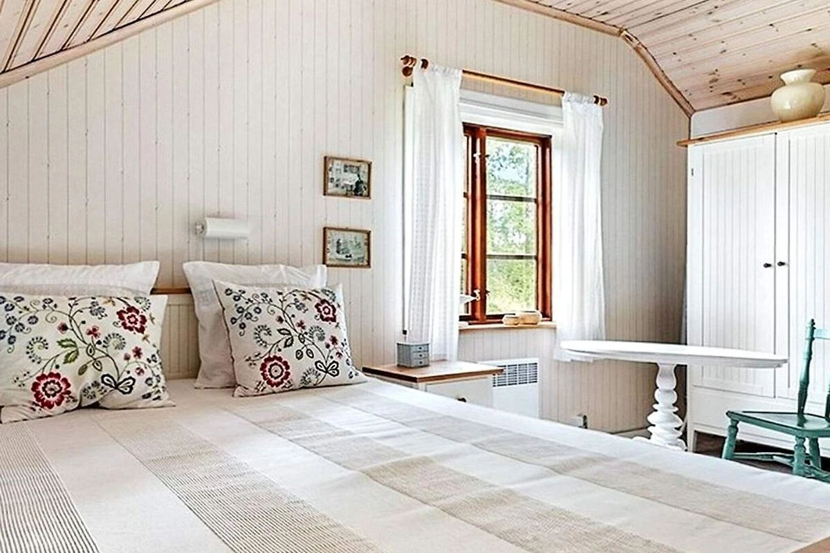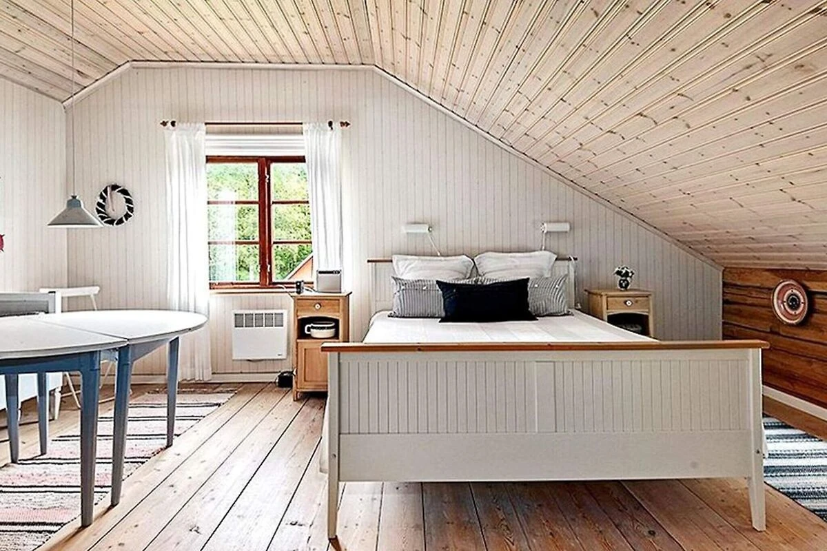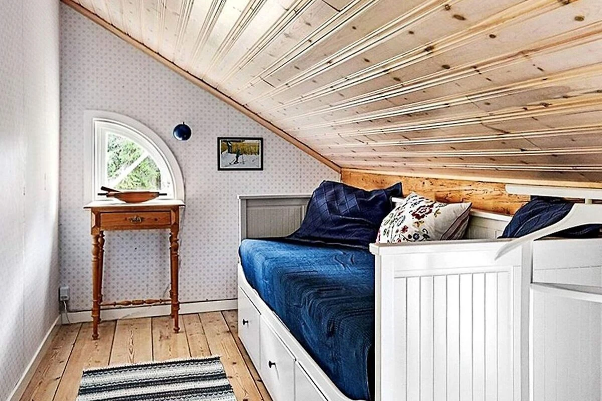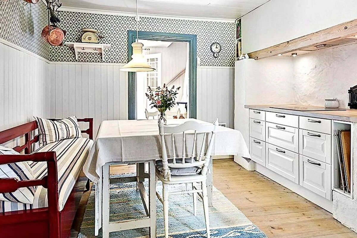 La posizione assolutamente isolata. La casa ha un grande fascino svedese. Pavimenti in legno, arredamento semplice. Carina.