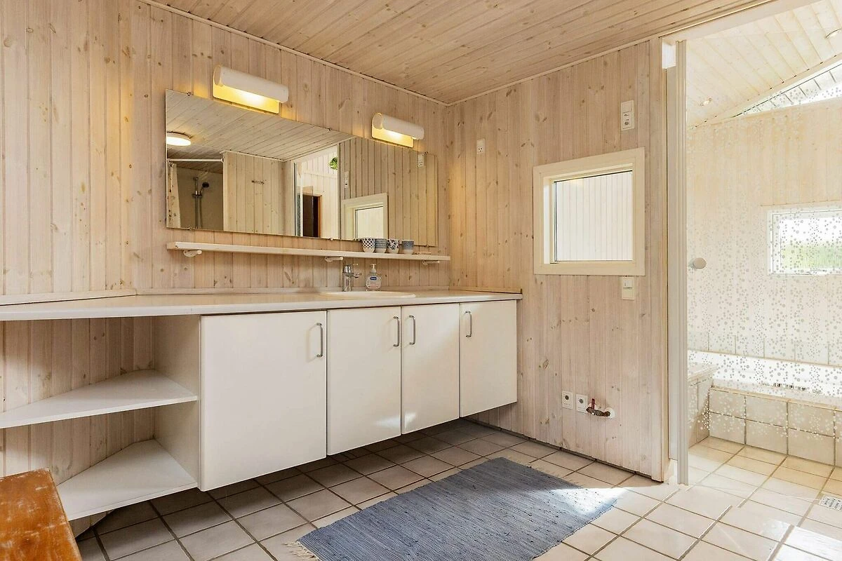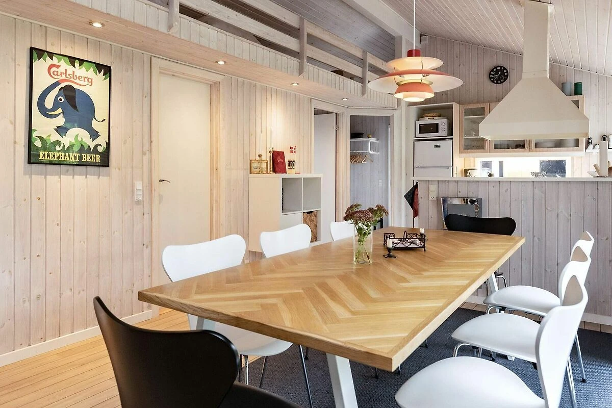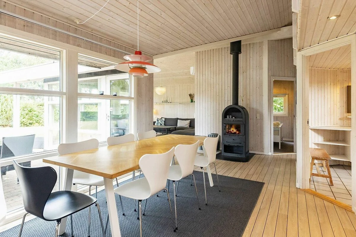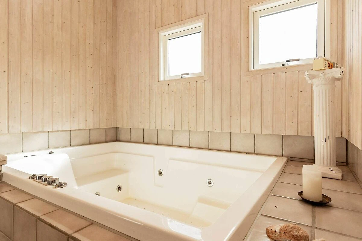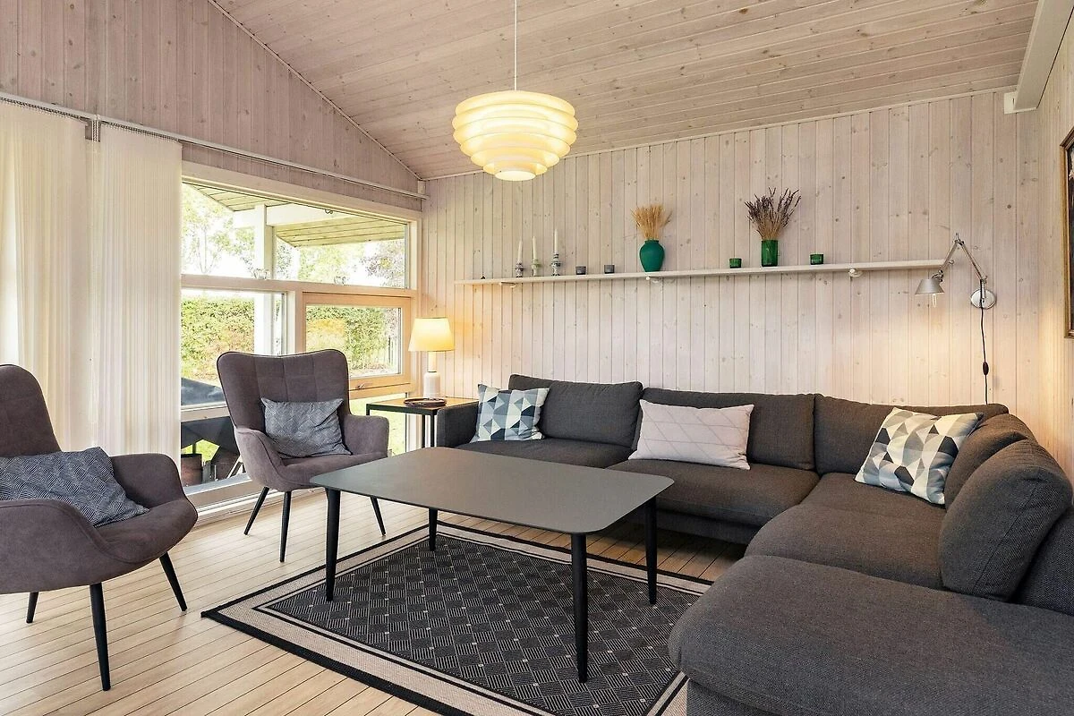 All'Hasmark Strand troverai questo cottage moderno con vasca idromassaggio e sauna. Il soggiorno ha un ambiente adibito a soggiorno / sala da pranzo con TV con lettore DVD e stufa a legna. Il reparto cucina è dotato di i.a. piano cottura, cappa aspirante, frigorifero con freezer e forno a microonde. Dal soggiorno si accede direttamente alla terrazza esposta a sud-ovest. La casa dispone di tre camere da letto arredate rispettivamente con due letti matrimoniali e due letti singoli. Inoltre, c'è un soppalco con due letti. Sul terreno indisturbato sono state allestite attrezzature da gioco per i più piccoli della famiglia. A 50 metri dalla casa c'è un'area verde con campo da calcio e bocce. ca. A 2 km dalla casa c'è un grande campeggio con negozi e ristoranti nella stagione estiva, e ci sono anche molte attività per i bambini, tra cui. un parco acquatico. Non in affitto a gruppi di giovani.