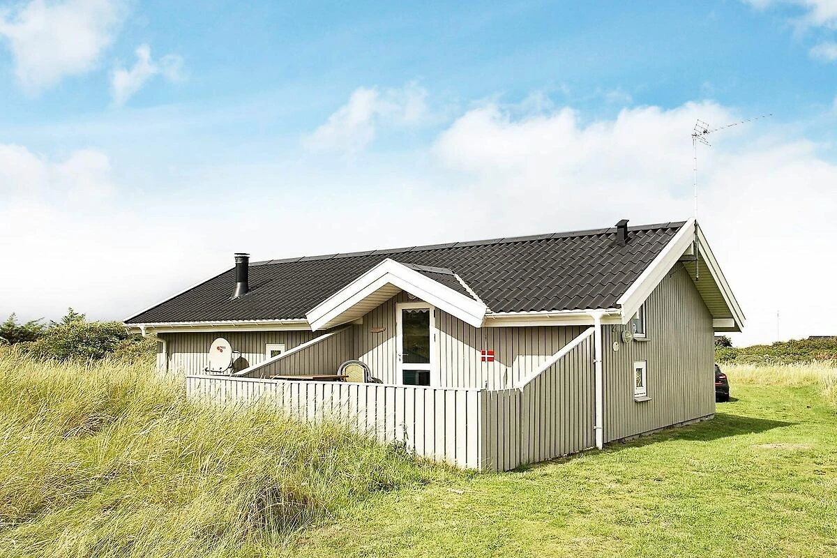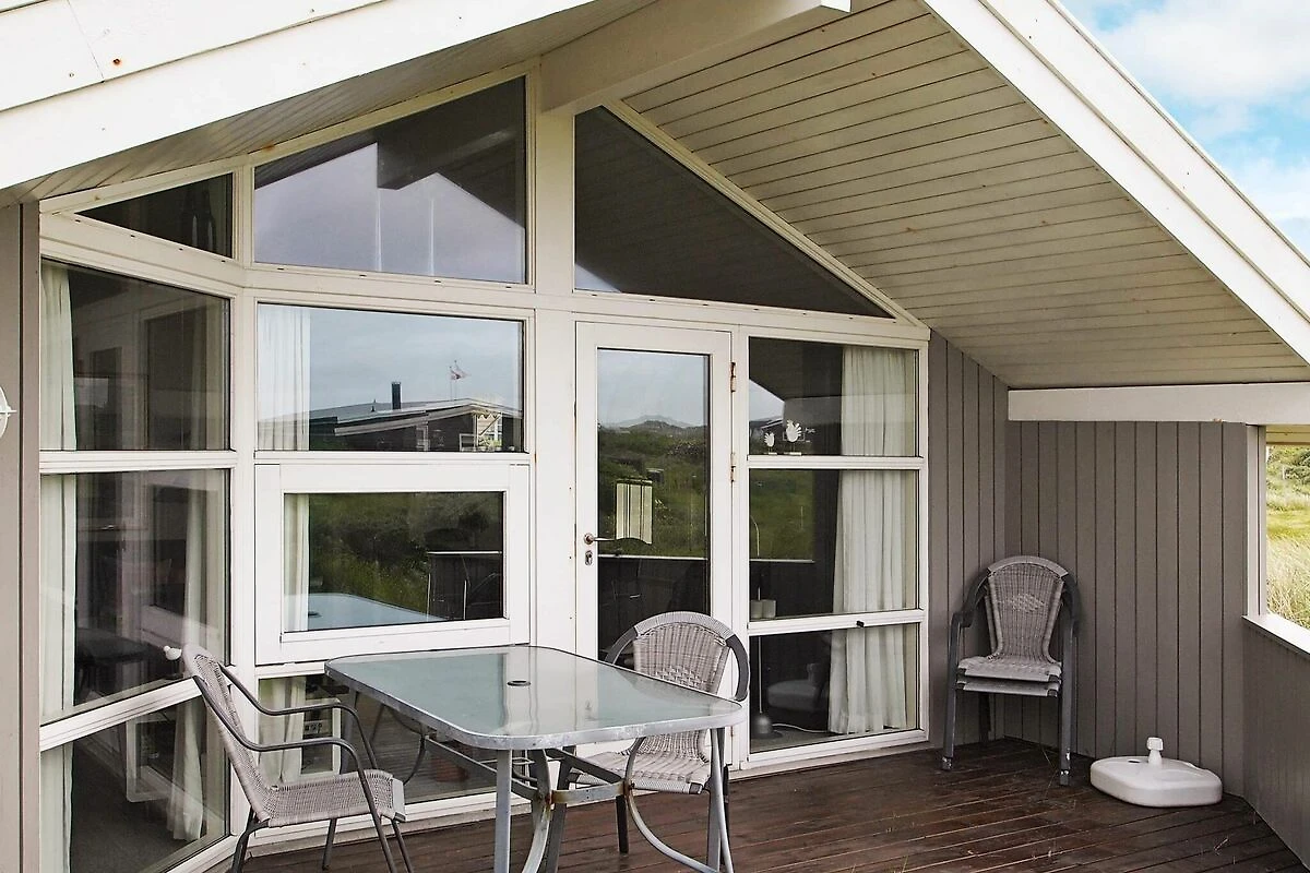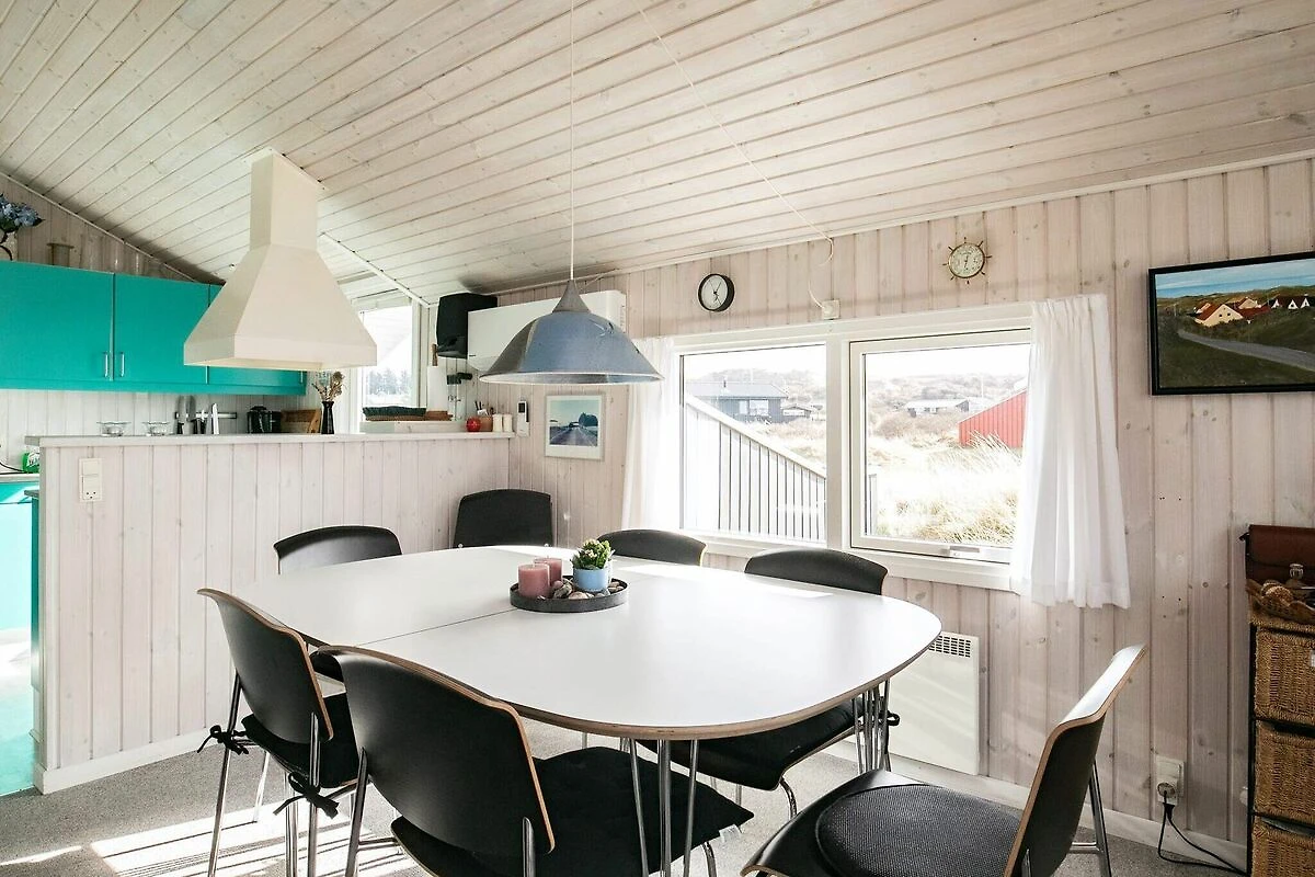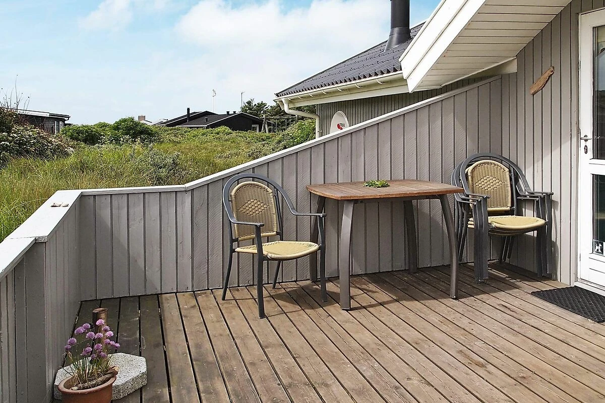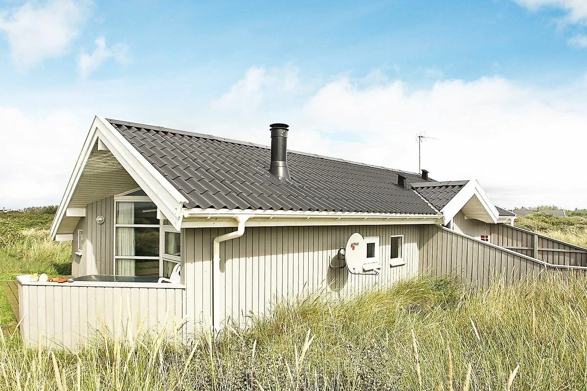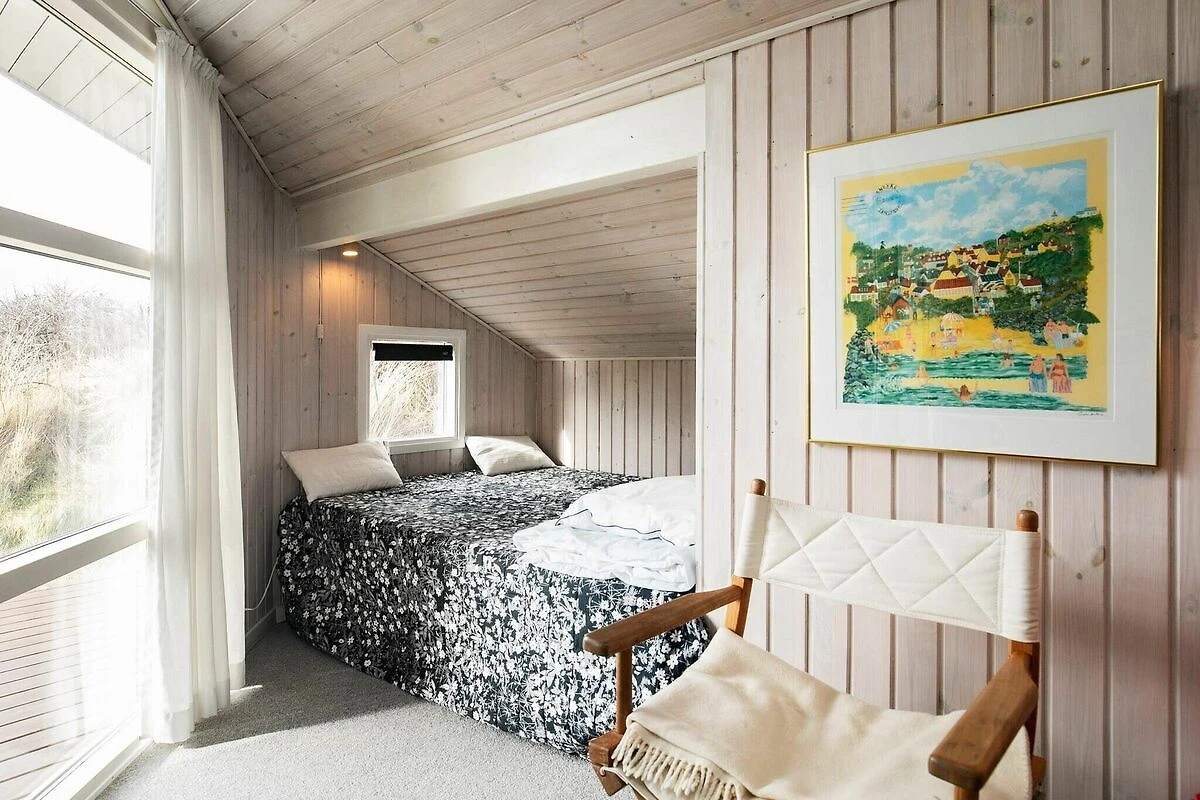 Ca. A 100 m dal mare su un grande appezzamento di dune leggermente collinare si trova questo cottage ben tenuto. Da un paio di finestre del soggiorno si intravede appena il mare mentre da un punto alto del lotto si ha una buona vista mare. Soggiorno in collegamento aperto con la cucina, due camere da letto, alcova e bagno con doccia e riscaldamento a pavimento. L'arredamento è di buon gusto e moderno in stile cottage danese e con l'accento principale sul benessere, l'intimità e l'intimità. Per il riscaldamento economico e l'intimità c'è una stufa a legna. Il terrazzo scoperto a sud/ovest ha un buon riparo mentre il terrazzo esposto a est/sud è coperto. La trama è aperta, leggermente collinare e si affaccia sul mare da un punto alto.