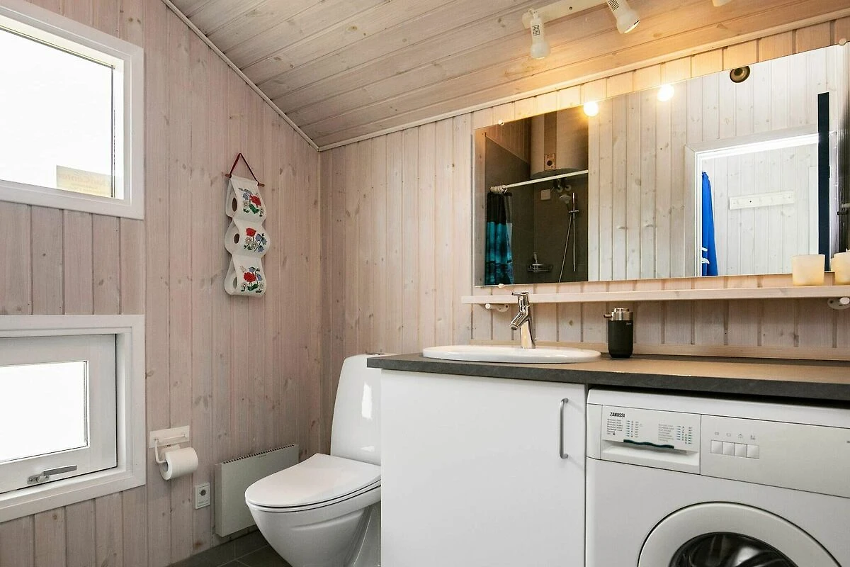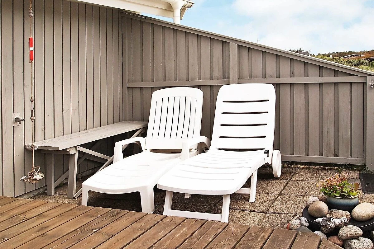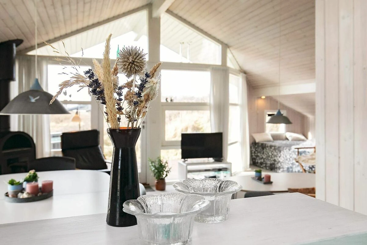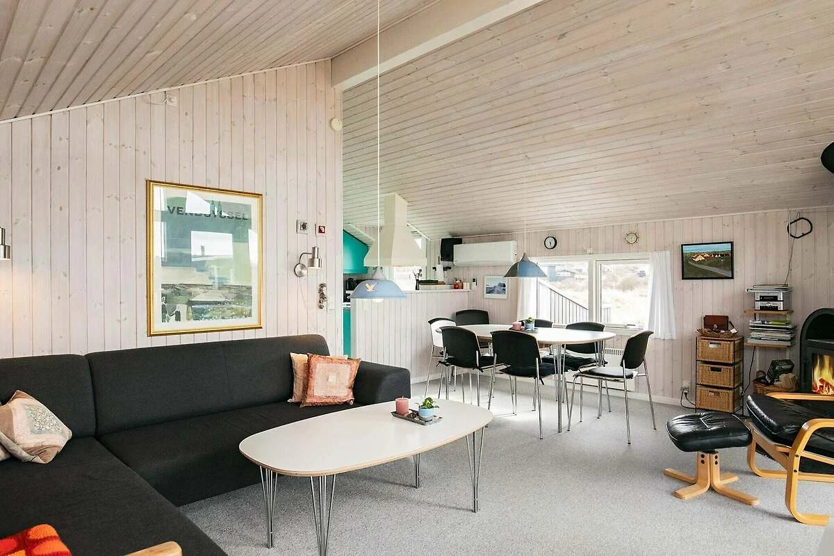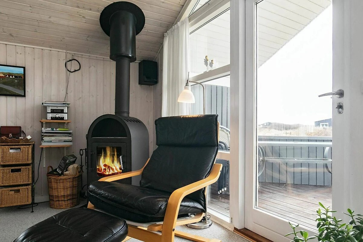 Ca. A 100 m dal mare su un grande appezzamento di dune leggermente collinare si trova questo cottage ben tenuto. Da un paio di finestre del soggiorno si intravede appena il mare mentre da un punto alto del lotto si ha una buona vista mare. Soggiorno in collegamento aperto con la cucina, due camere da letto, alcova e bagno con doccia e riscaldamento a pavimento. L'arredamento è di buon gusto e moderno in stile cottage danese e con l'accento principale sul benessere, l'intimità e l'intimità. Per il riscaldamento economico e l'intimità c'è una stufa a legna. Il terrazzo scoperto a sud/ovest ha un buon riparo mentre il terrazzo esposto a est/sud è coperto. La trama è aperta, leggermente collinare e si affaccia sul mare da un punto alto.