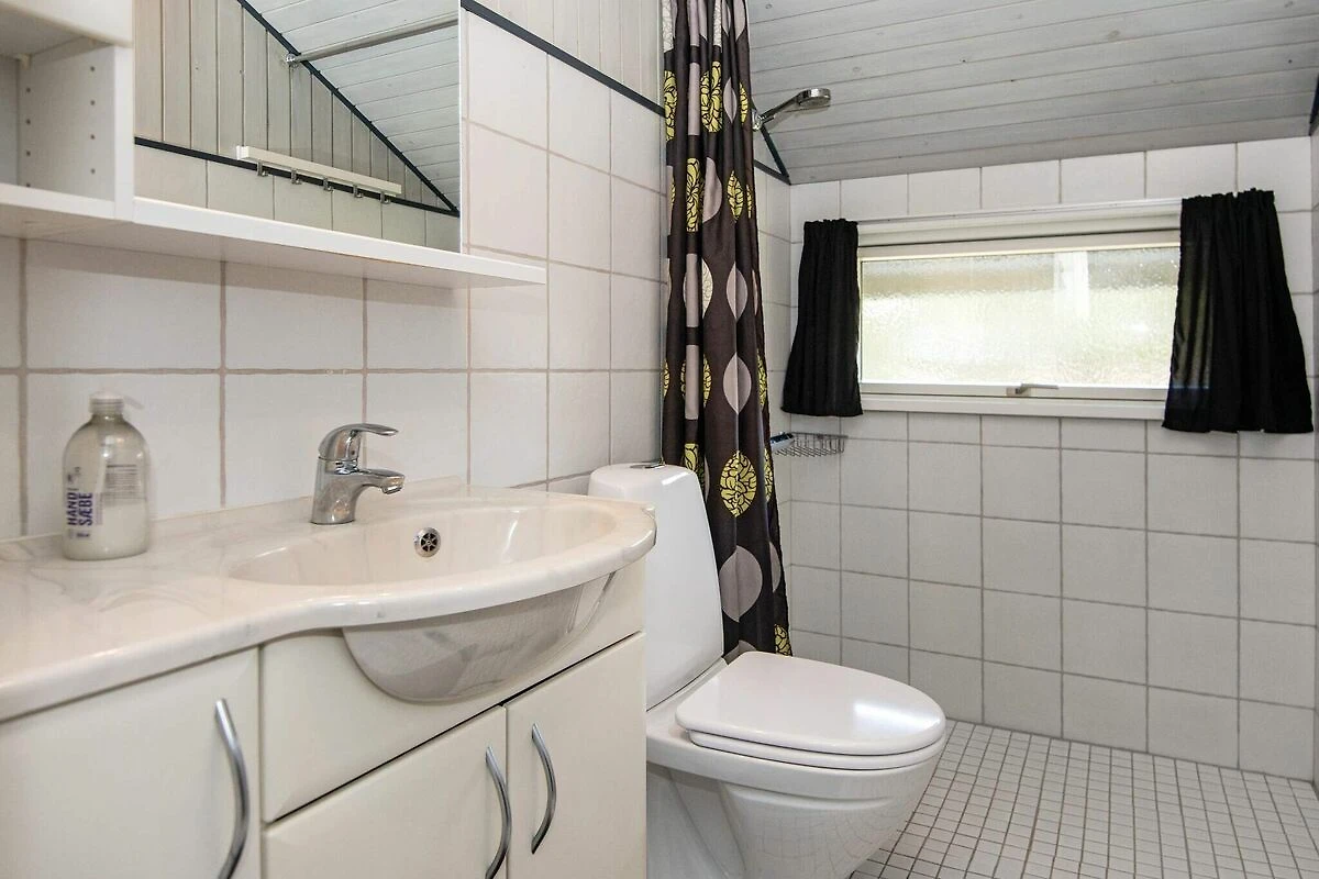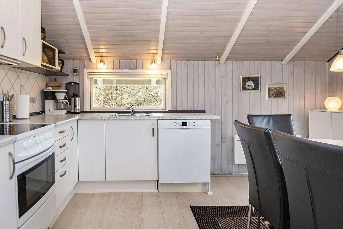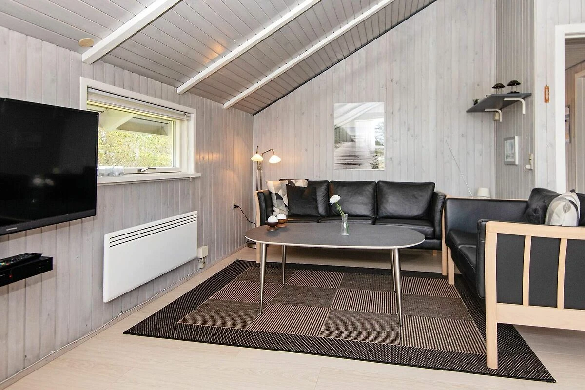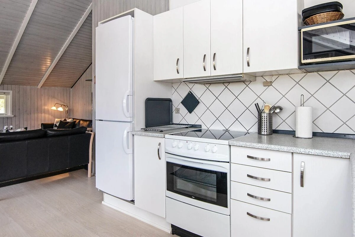 , Angolo cottura(mobile cucina(elettrico), cappa aspirante, caffettiera, forno a microonde, lavastoviglie, frigorifero, congelatore(1-59L)), Soggiorno/camera da letto(TV(cavo, canali televisivi tedeschi, canali TV danesi), lettore CD, impianto stereo), Camera da letto(letto matrimoniale), Camera da letto(letto matrimoniale), Camera da letto(2x letto singolo), Bagno(sotto pavimento)(vasca o doccia, lavabo, WC), riscaldamento(elettrico), terrazza, terrazza(coperto), mobili da giardino, giochi per bambini