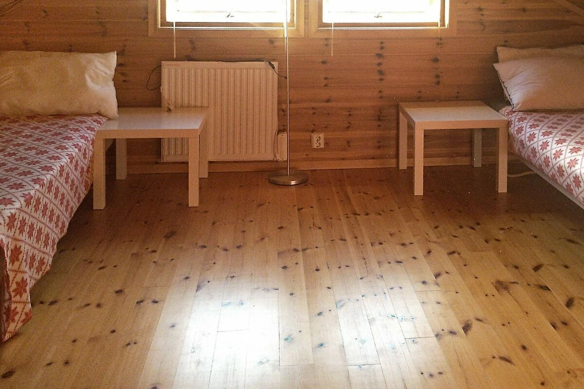 La casa ha una posizione super con vista sul Hardangerfjord. Ha un bel grande soggiorno e tre camere da letto, una ripida scala porta in soffitta, dove possono dormire altre due persone. La casa è arredato in modo funzionale. Un piccolo radiatore a piastre può ancora fornire calore la sera.