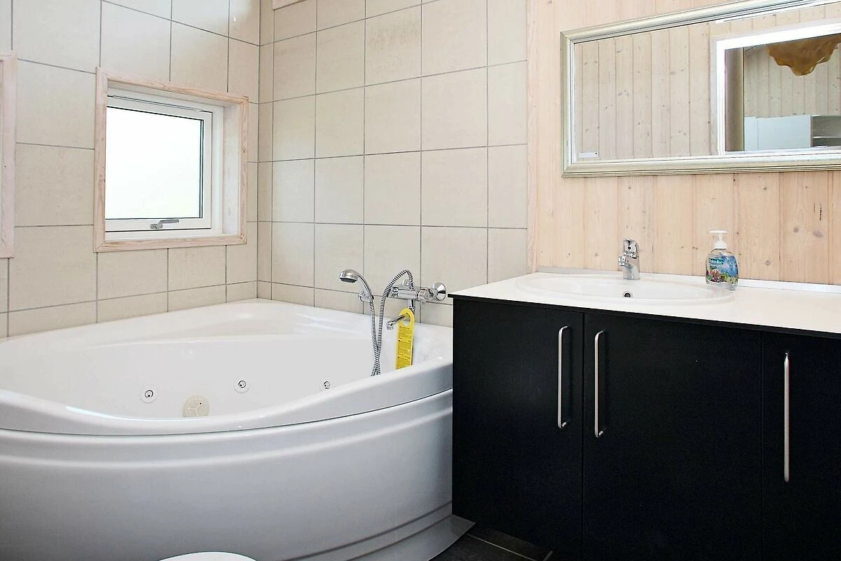 , Soggiorno(2x letto pieghevole (1 pers.)), Angolo cottura(mobile cucina(elettrico), cappa aspirante, caffettiera, lavastoviglie, frigo con congelatore, lavatrice), Soggiorno/camera da letto(TV(canali televisivi tedeschi, canali TV danesi), lettore DVD, lettore CD, impianto stereo), Camera da letto(letto matrimoniale), Camera da letto(2x letto singolo), Camera da letto(2x letto singolo), Bagno(sotto pavimento)(vasca o doccia, lavabo, WC), Bagno(sotto pavimento)(lavabo, WC), vasca idromassaggio(all’interno, riscaldata, 2 persone), riscaldamento(elettrico), terrazza, barbecue, termopompa aria-aria