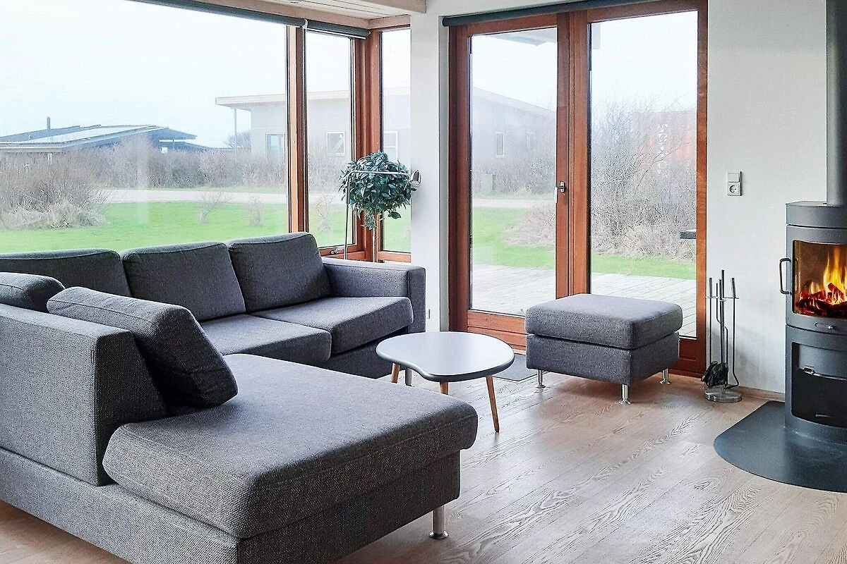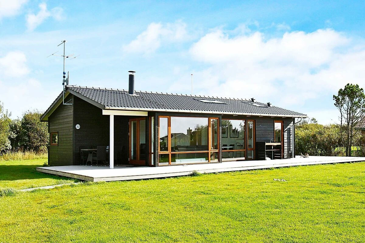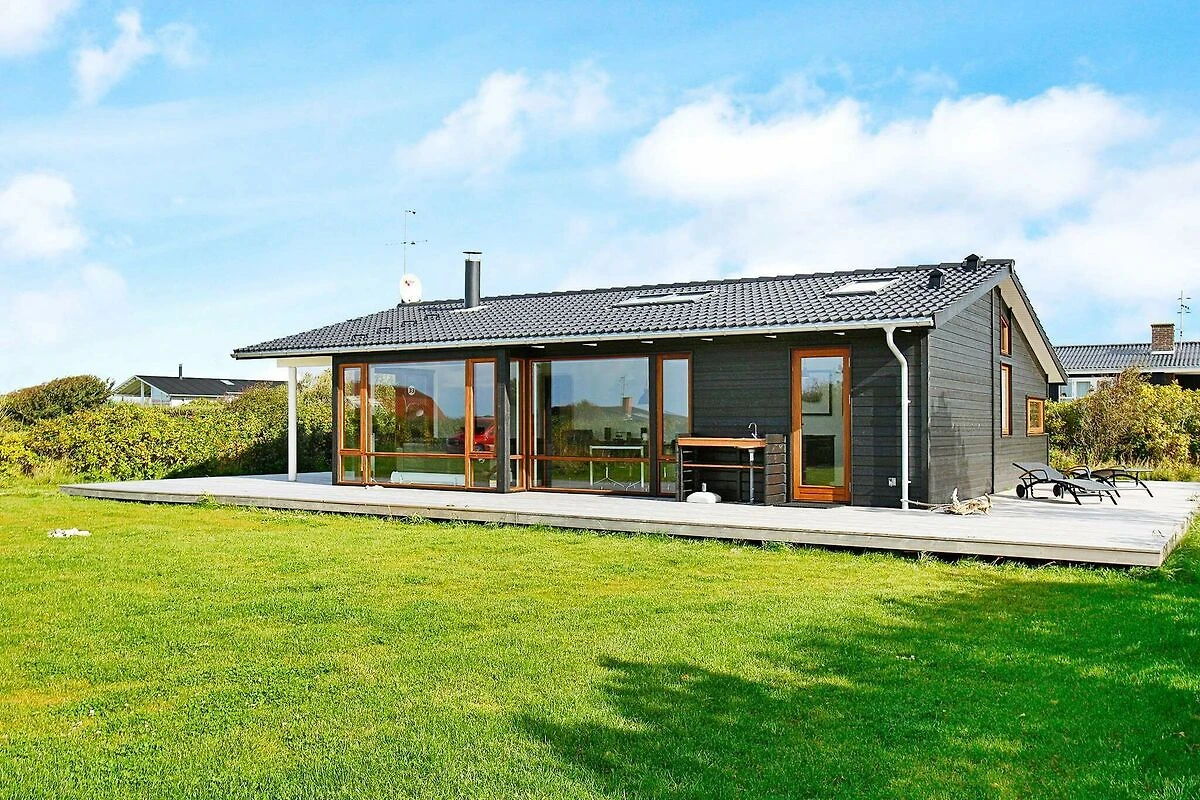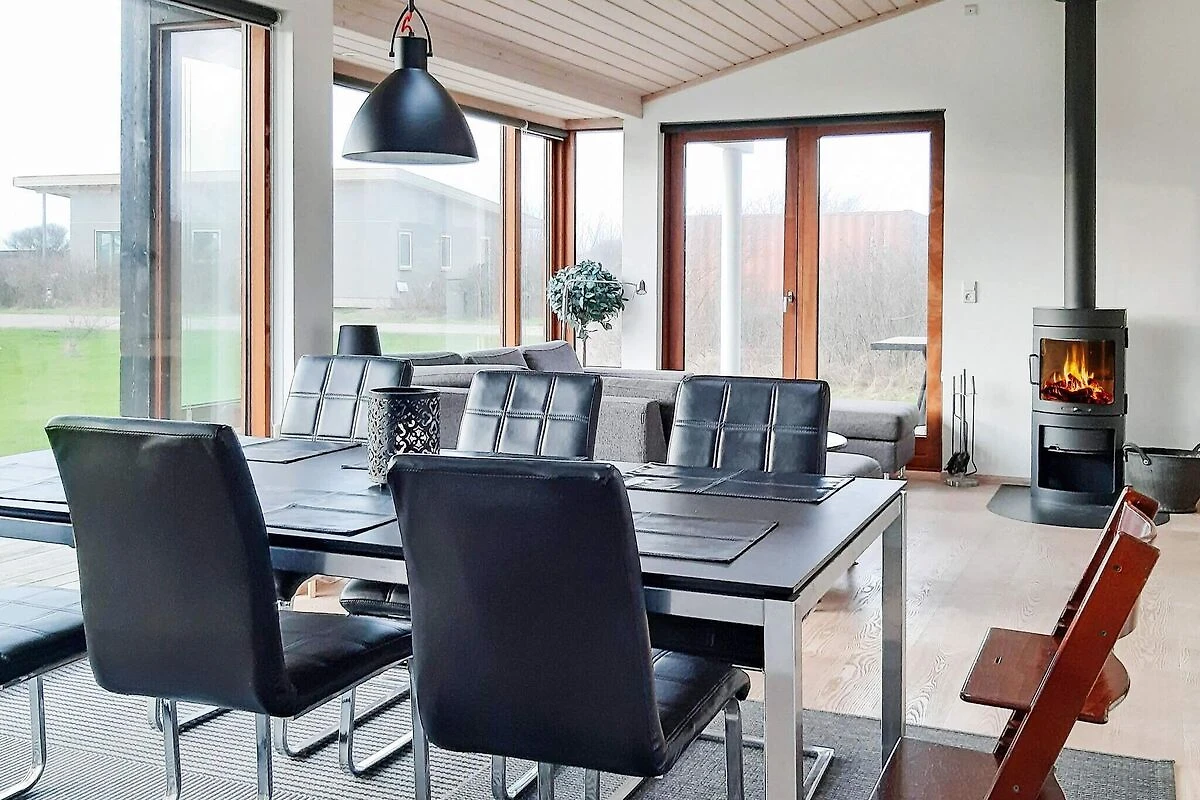 Casa vacanze situata nella zona delle case vacanza Kærgården. La casa si trova in alto in un ambiente tranquillo e dal terreno e dalla terrazza si gode di una vista sul Limfjord. La casa è ben arredata con un luminoso soggiorno con stufa a legna per creare intimità e calore nelle fresche serate estive o quando fuori si agita il temporale autunnale. C'è una cucina aperta e ben attrezzata con i.a. lavastoviglie e microonde. In una camera da letto c'è una TV a schermo piatto extra con lettore DVD. Il bagno è dotato di vasca idromassaggio e comodo riscaldamento a pavimento. C'è una lavatrice. C'è un bagno extra con lavandino e un comodo riscaldamento a pavimento. La casa dispone di una terrazza all'aperto molto ampia e di una terrazza coperta. Lì puoi trovare riparo e goderti la vista sul Limfjord e la zona, mentre la cena viene preparata sul barbecue della casa. C'è una pratica cucina esterna in collegamento con la terrazza. La zona è molto a misura di bambino, dove i più piccoli possono divertirsi in sicurezza durante le vacanze. C'è un parco giochi comune con i.a. mini golf. La distanza dal Limfjord è di ca. 200 metri.